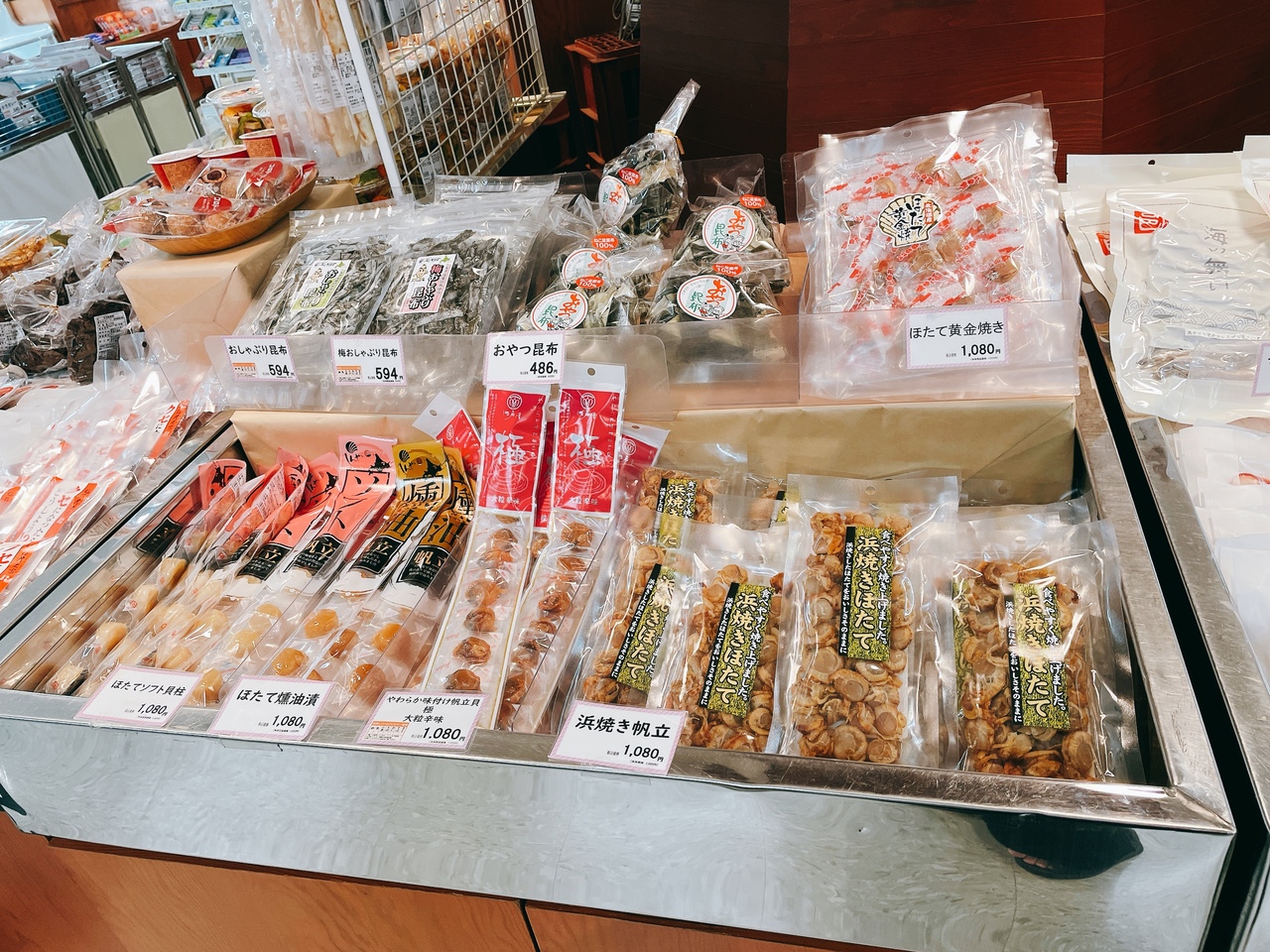 総合展示販売コーナーは品が多く、ホタテの貝柱くんせいなども販売されていました。
