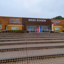 正面中央にトイレ、左側にフードコートとレストラン(こもれび)、右側にはショッピングエリア(お土産店等)を配置していました。