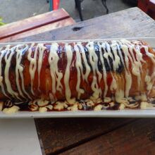 山形に戻り「どんどん焼き おやつ屋さん」で小腹を満たすことにしました。「チーズどんどん」のソース味330円を注文しました。初めての「どんどん」は巻いてあるお好み焼きのような感じで、もちもちしていて美味しかったです。
