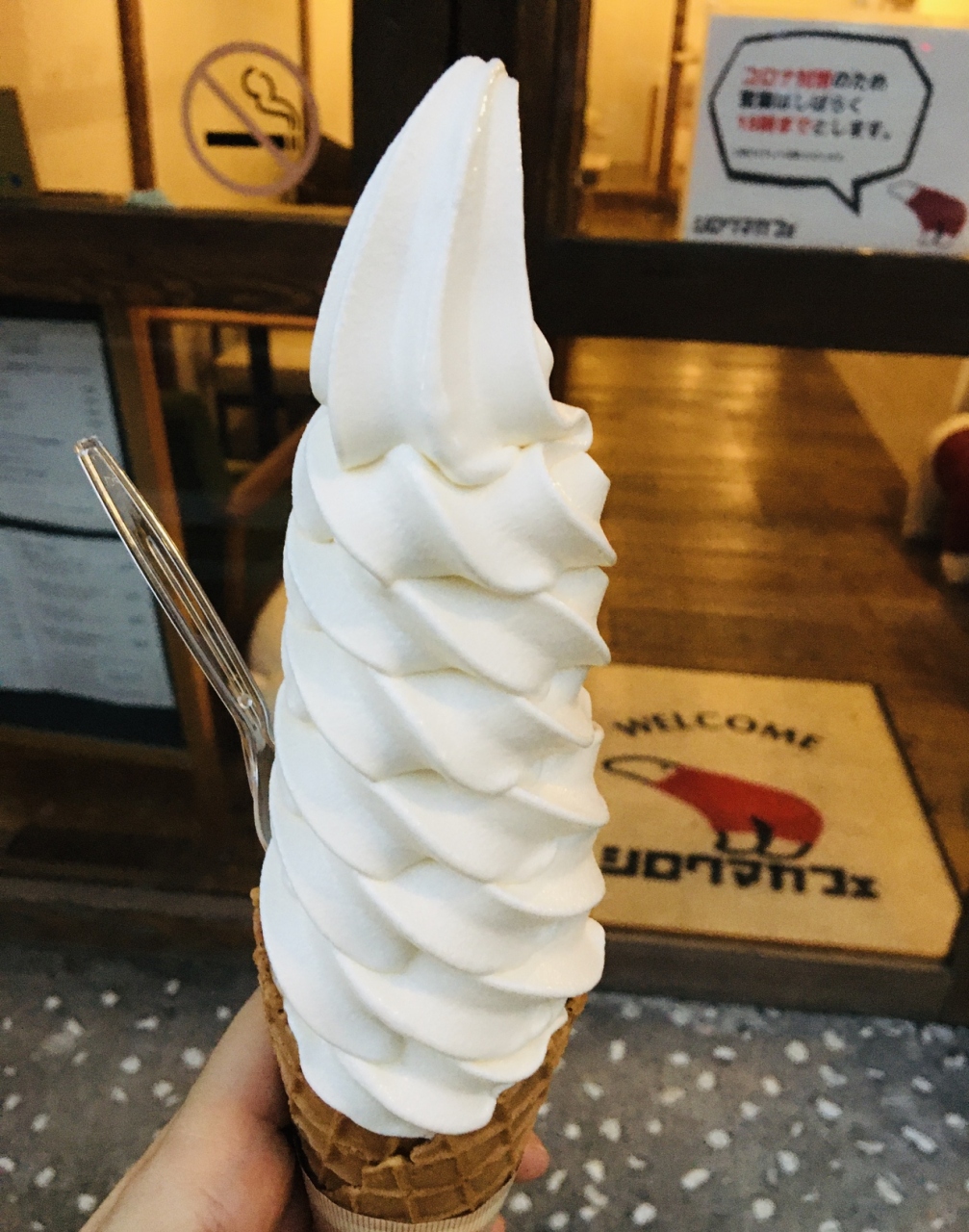 武蔵小山に近いエリアの戸越銀座商店街の中にあるカフェです。テイクアウトでソフトクリーム(500円)を購入。大満足の大きさです。店員さんに、溶けるのが早いので気をつけてくださいと言われたのですが、まさにその通りで、途中から滝のように流れるアイスに苦戦しました。足もボリュームも大満足ですが、コーンよりもカップをオススメします。