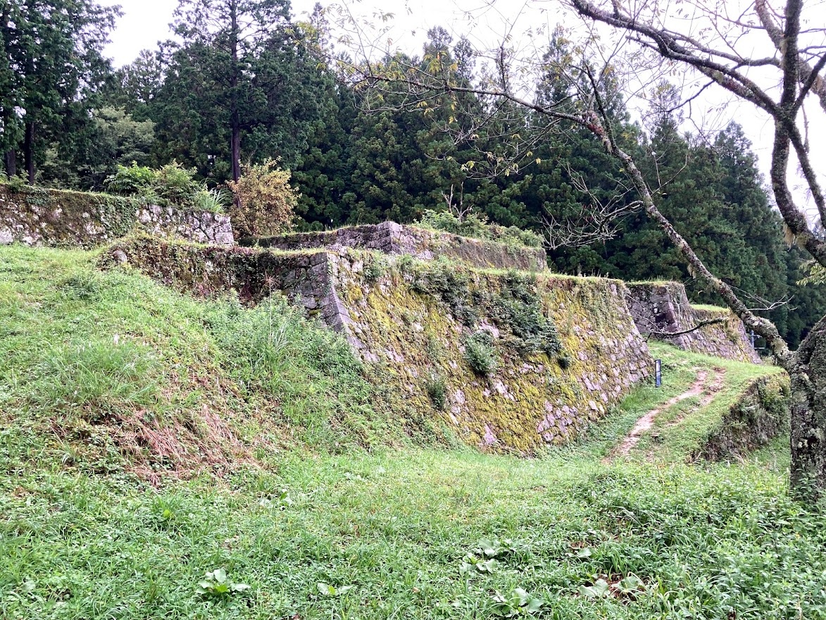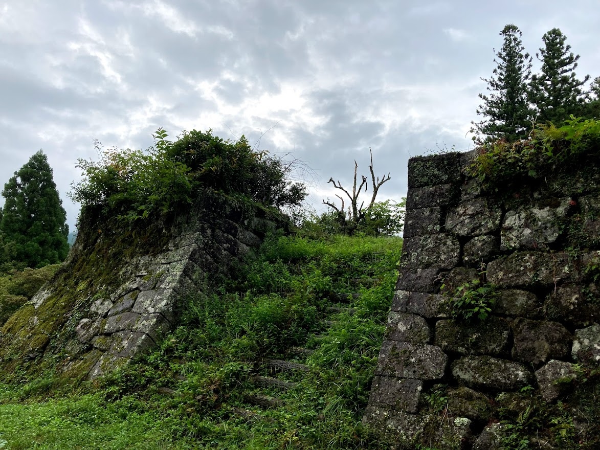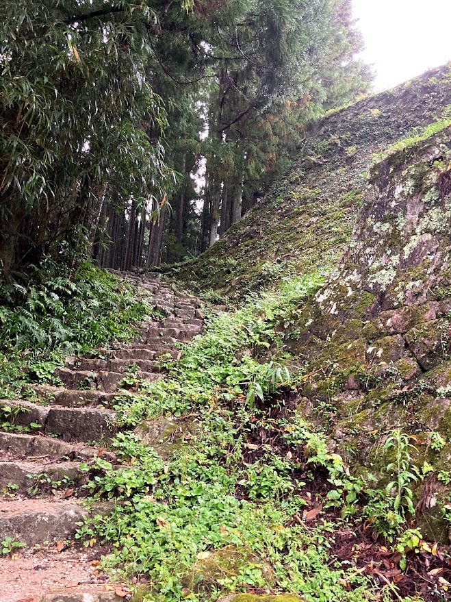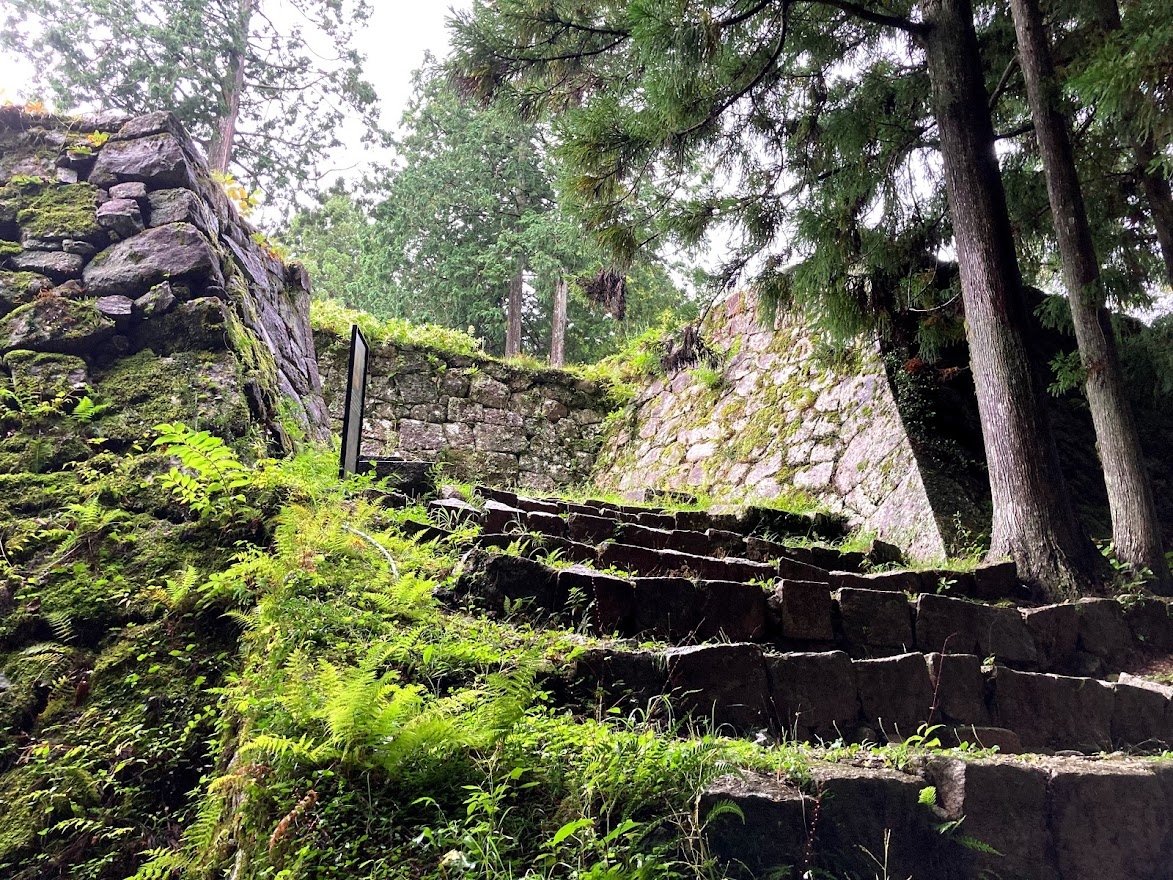 建物は現存しませんが、現存する高く苔むした石垣の勾配は美しく、息をのみます。特に、六段壁は圧巻です。