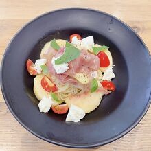・白桃と生ハム、モッツァレラの冷たいパスタ