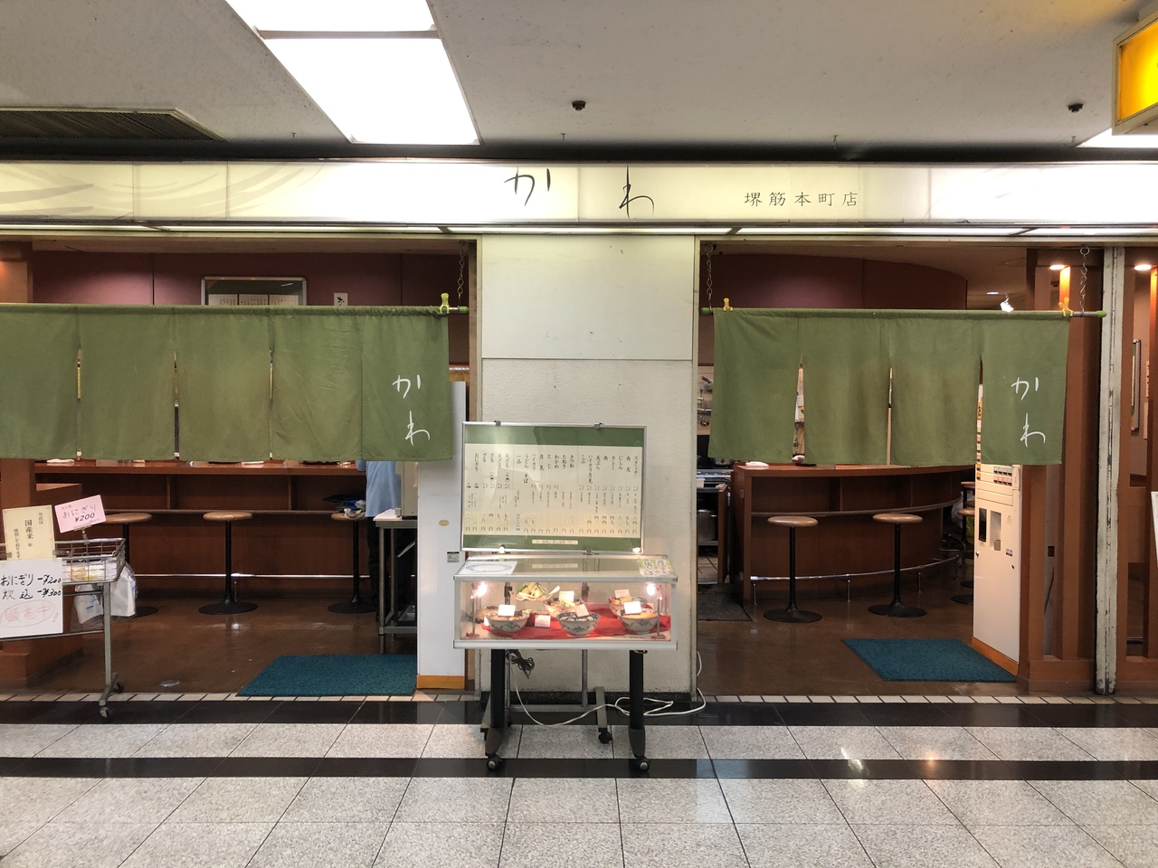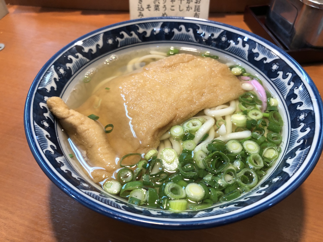 船場センタービル4号館B2F、大阪メトロ堺筋本町駅からすぐのところにあるそば・うどん店。L字型のカウンターのみのお店で、食券を渡すと1分くらいで商品が運ばれてきます。メニューはトッピングの組み合わせで20種類以上あり、迷ってしまうほど。「大阪ならうどんでしょう」ということで「きつねうどん」を注文。すぐに運ばれてきたうどんは、柔らかめの大阪のうどん。透き通っただしは旨味もあって美味。セルフ式のチェーン店よりも実はコスパもよくて、おいしいうどんの気がしました。