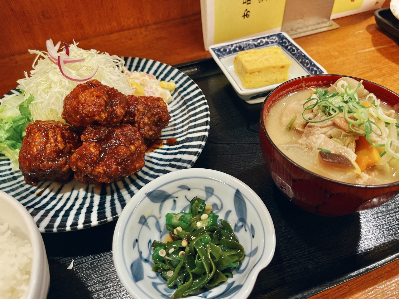 コロナ禍だからだろう〜お弁当を買いに来る人や宅配が増えたから夕方の忙しい時間帯でも店内は混む事なくゆっくりです!久しぶりの訪問なので定番「茄子味噌」と初めてのオーダー「鬼唐揚げ」にしてみました。