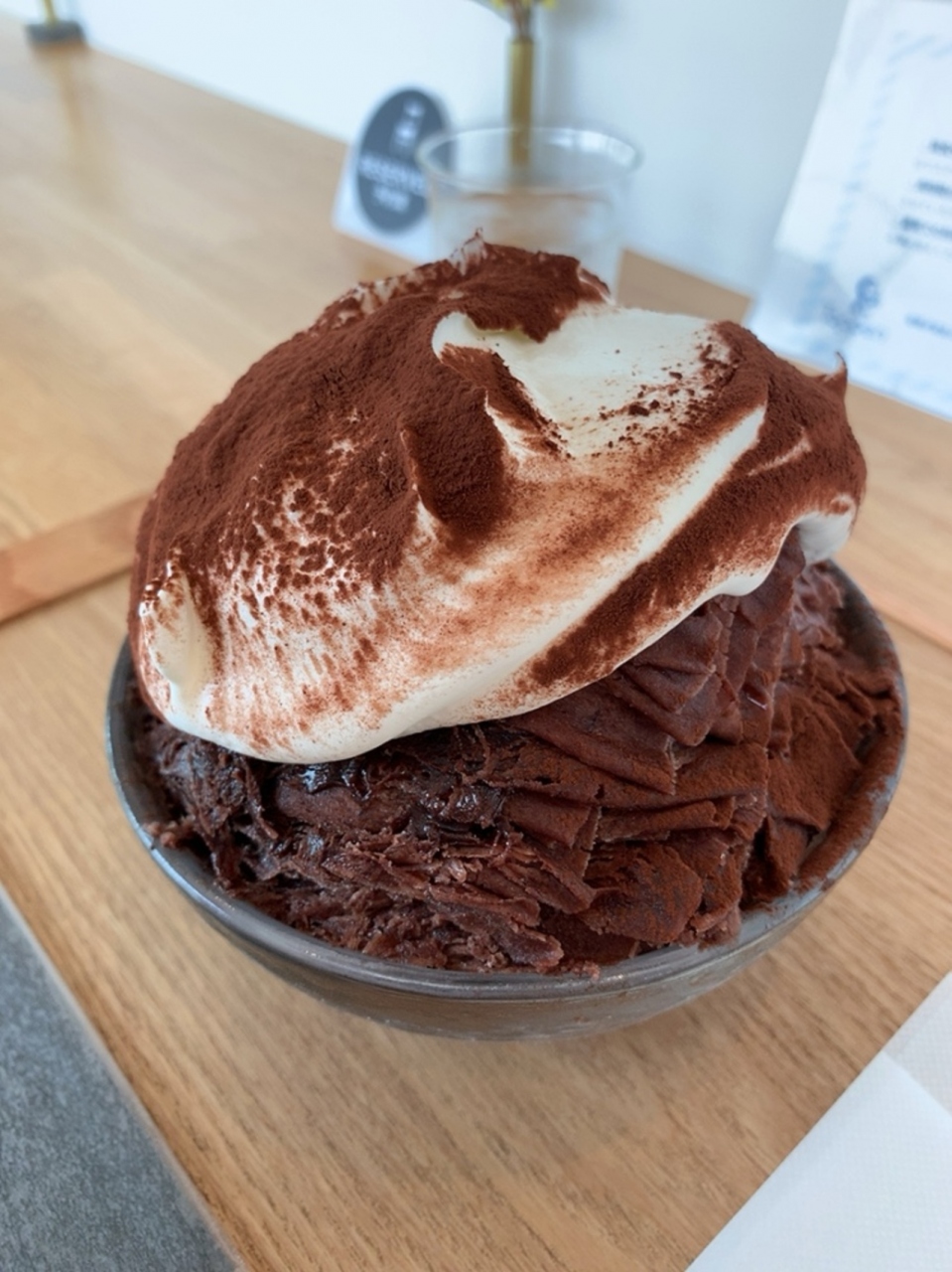 ショコラかき氷は、フランス・ヴァローナ社のプードルカカオを使っていて、写真の見た目からして濃厚ですが、実際に食べてみてもかき氷というよりは濃厚チョコアイスって感じでした! ホイップクリームトッピングは有料ですが、味変を楽しんだり、SNS映えの写真を撮る為には必要かも! 冷たいかき氷と食べ続けるとお腹が冷えそうだったので、ホットのカフェラテも一緒に注文しましたが、とっても美味しかったです。