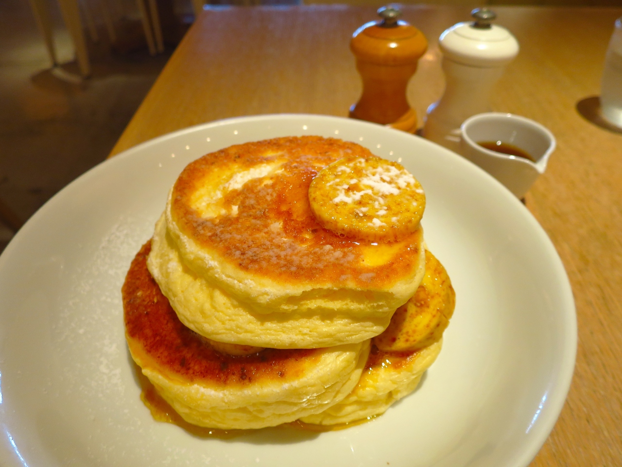 給仕される料理の値段はいずれも高め。朝食メニューでも1,000円は確実に超えます。その分、量は多めなので値段の高さはあまり気にならないかもしれません。パンケーキが人気メニューの一つではありますが、パンケーキそのものは甘さが全くと言っていいほどありません(好みで蜂蜜をかけて甘さを調節します)。他の料理も甘さが無いか控えめであるため、甘いものが苦手な人でも気軽に利用できるカフェの一つだと思います。