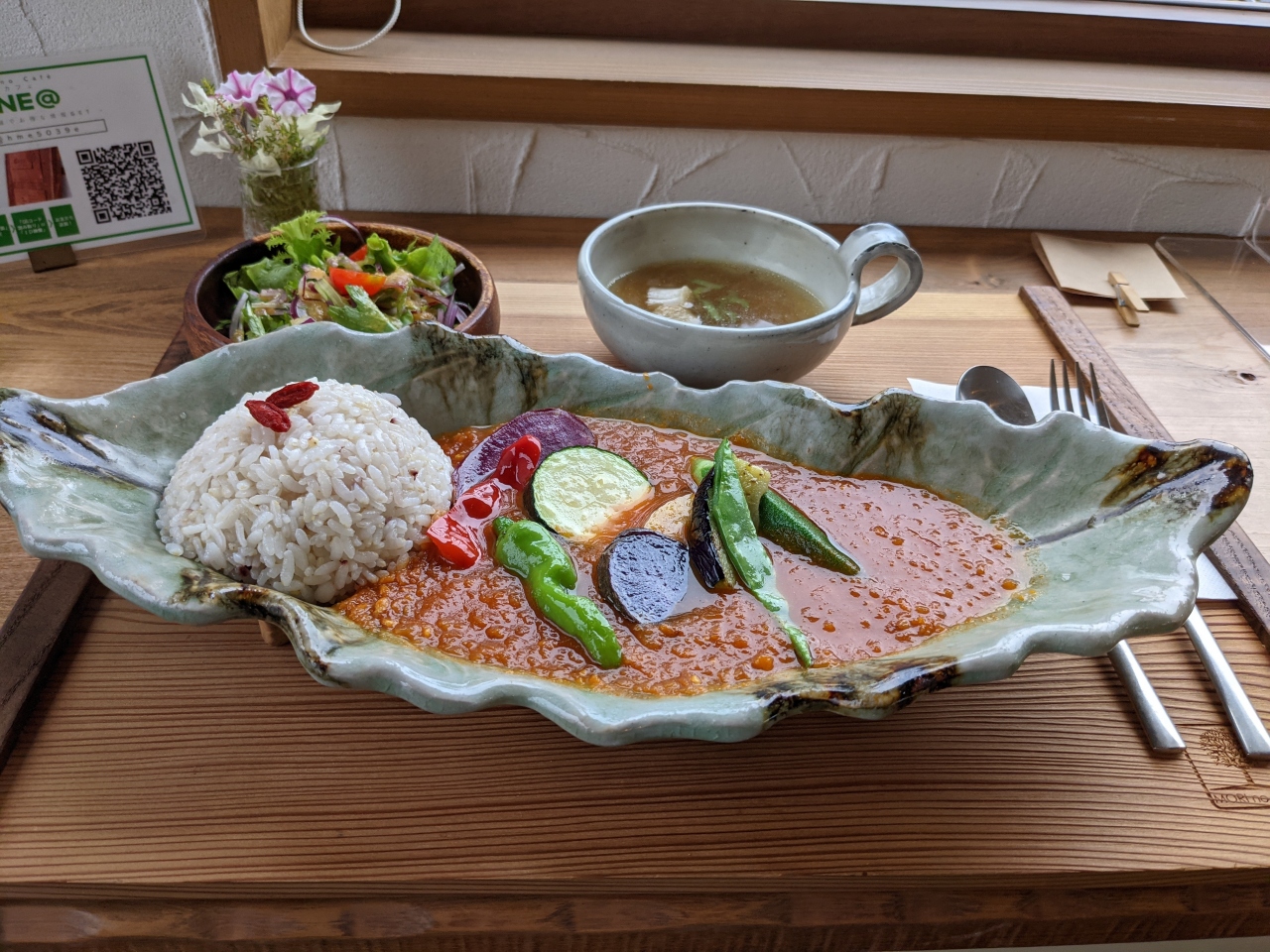 明日香資料館の近くに最近できたカフェ。山の中というよりは田んぼの中、といったほうが適切鴨しれません。とてもおしゃれで、あんまり明日香村にはあってないかもしれない。でも最近このあたりにはおしゃれカフェが続々とオープンしていて魅力的ですね。ちょいお値段お高めですが、健康的でおいしいと思います。
