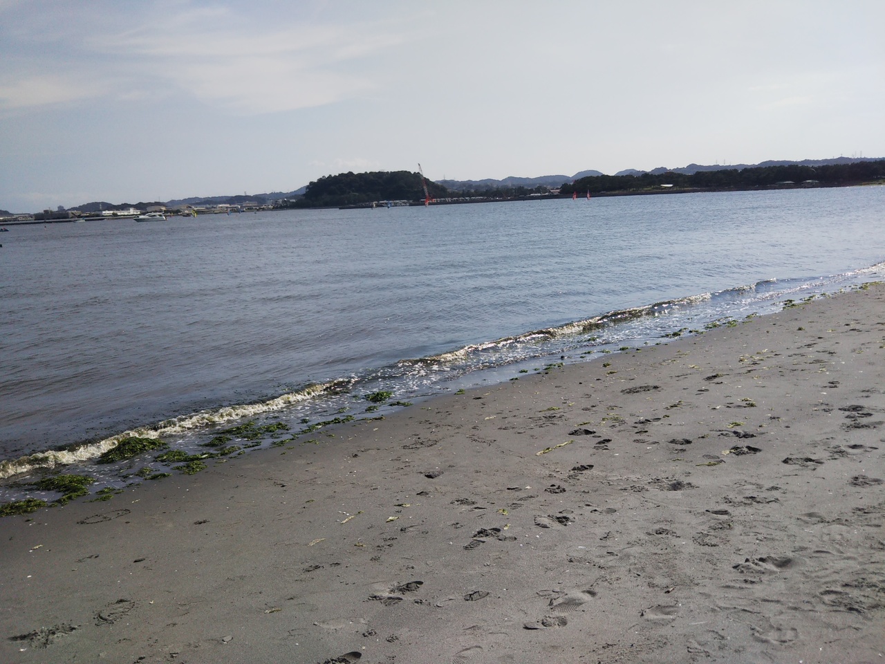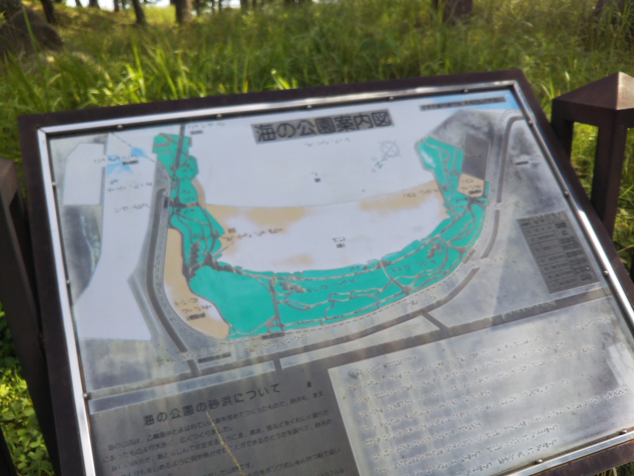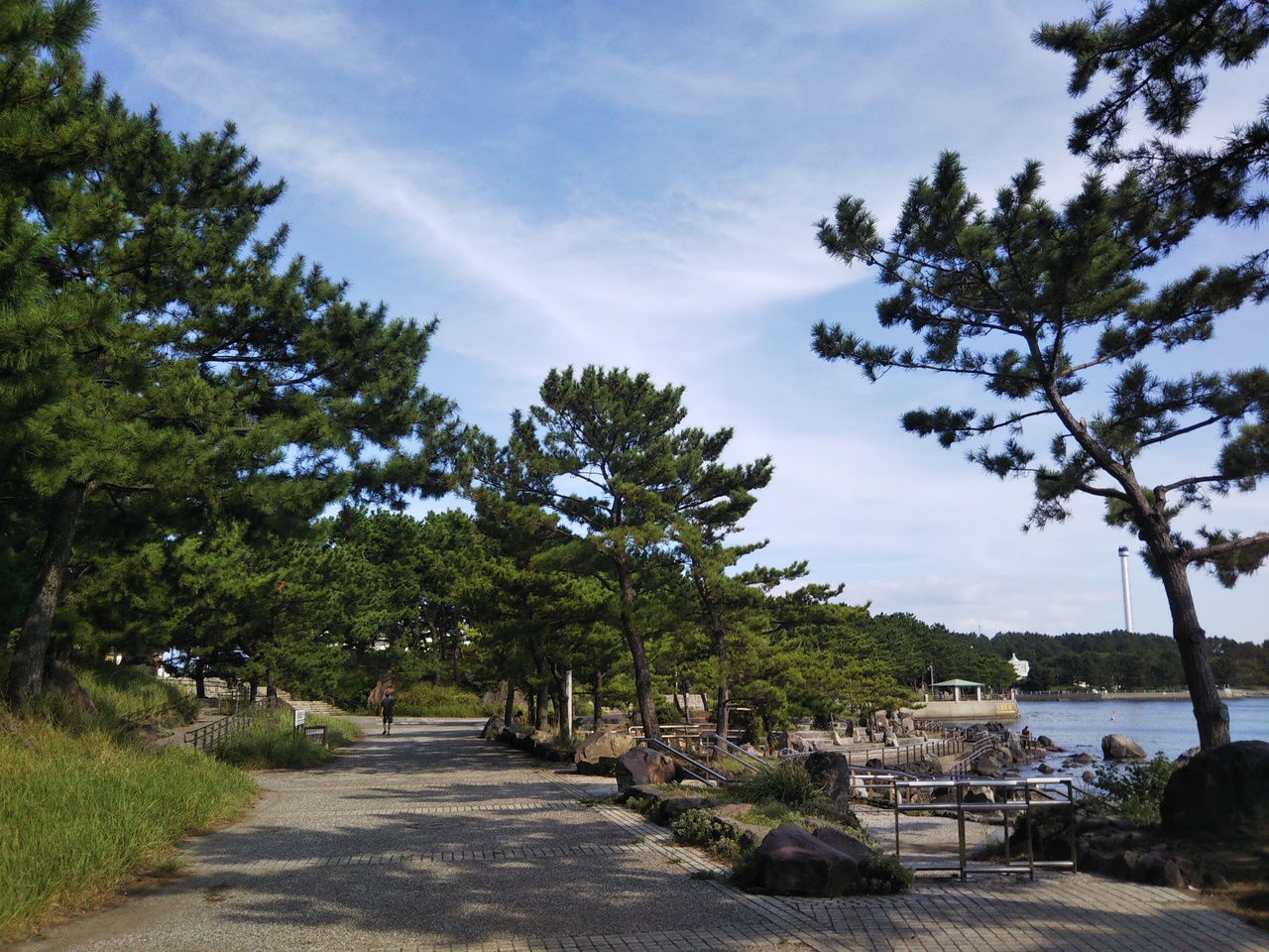 金沢シーサイドラインの三つの駅に平行する海沿いの長い公園。