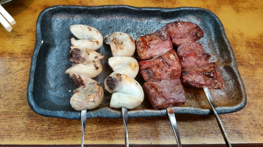 名物のヤキトンは、ハツとコブクロを塩で2本ずつ注文する。