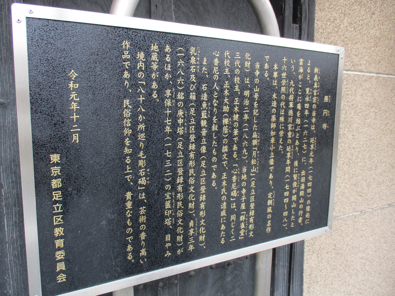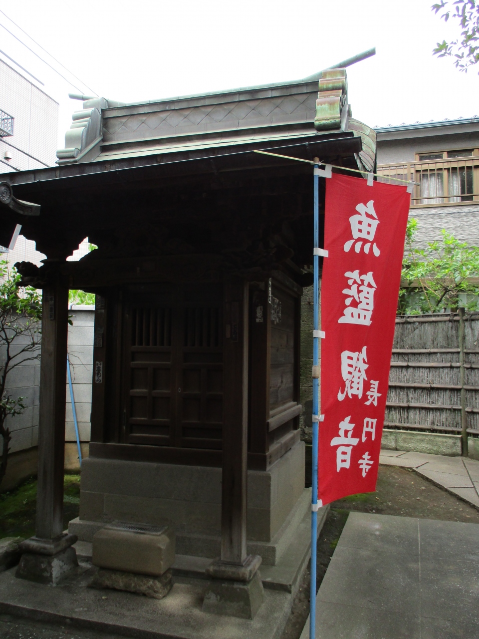 千住近辺を散歩していた時に、お寺が目に入ったので寄ってみました。山門が黒塗りで風格ある造りのお寺でした。境内には立派な鬼瓦も置かれていました。また小さなお社とともに、魚籃観音と書かれた幟も立っていました。静かで落ち着いた雰囲気のお寺でした。