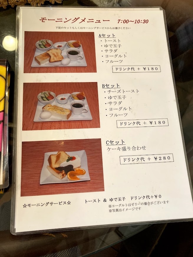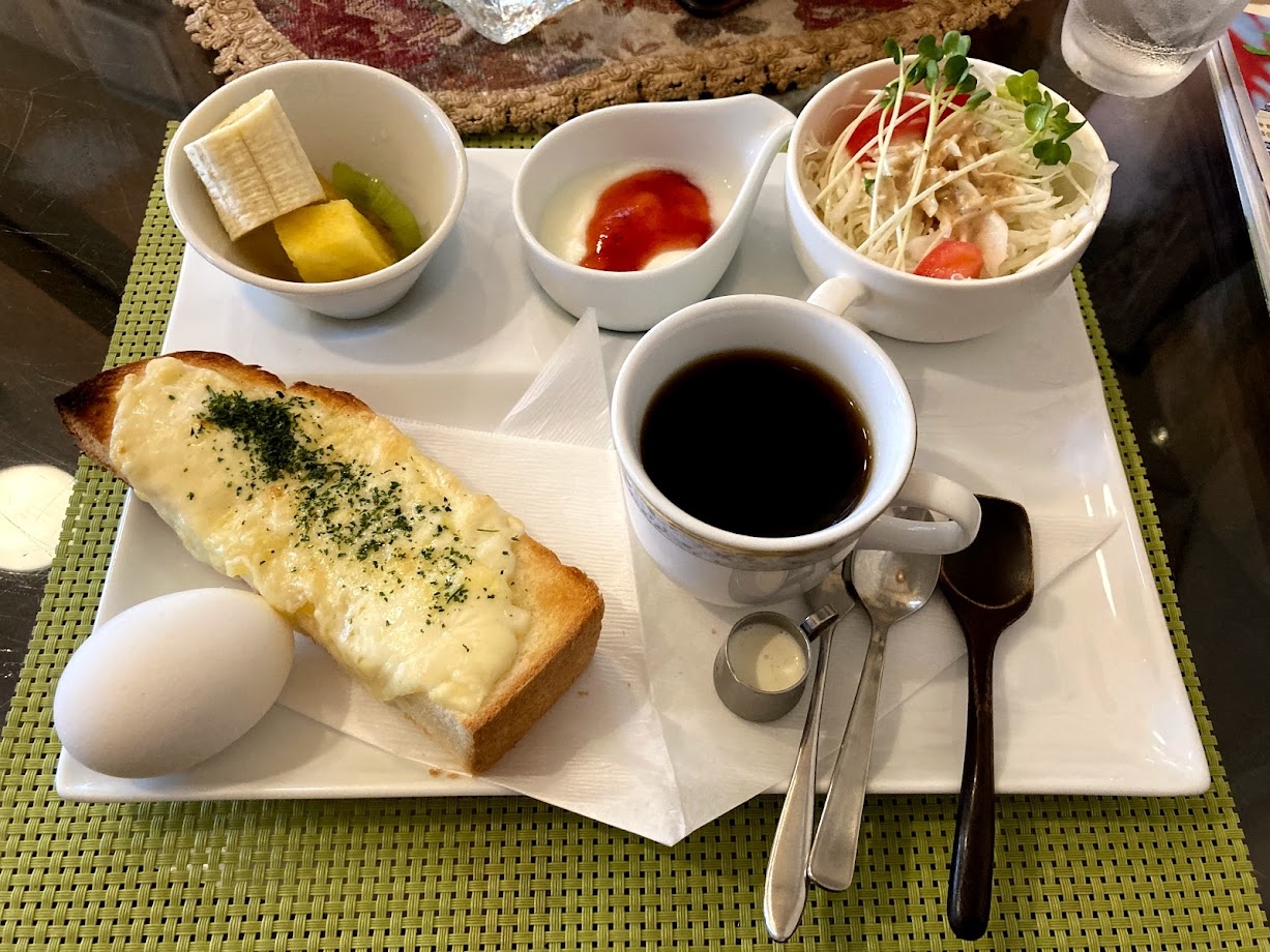 モーニングは、レギュラーモーニングの他にプラス料金のモーニングもあり、チーズトーストのBセットにしましたが、大正解!サラダもたっぷり入っていて、フルーツもみずみずしくて、さらに絶妙な半熟卵が絶品でした。モーニングのコスパレベルが高いと思います。