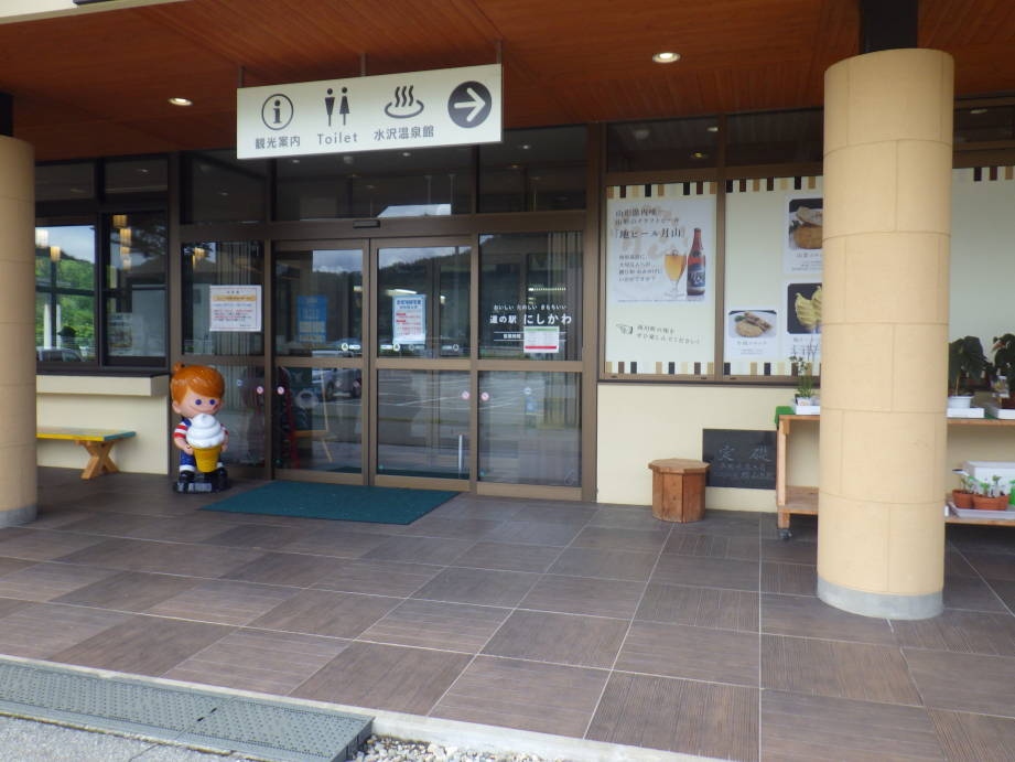 「出羽屋」で昼食後、30分ほどで道の駅「にしかわ」に到着しました。直売所ではきのこがたくさん売られていました。「乾燥きのこ」や「塩漬けきのこ」、「きくらげ干し」などを買うことができました。また、直売所で1000円以上買ったので、スタンプ帳提示で「月山自然水」のペットボトルが1本いただけました。