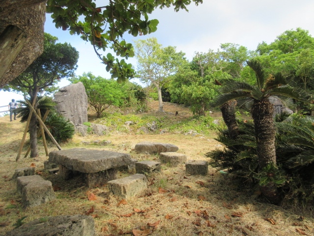 沖縄の海中道路を渡って宮城島まで行くと、こちらの史跡があります。ちょっとわかりにくい場所ですが、その分混んでいなかったです。まずはバンタ(崖)があるので、景色もよく素敵です。遺跡は縄文時代のものだそうで、説明板もありました。