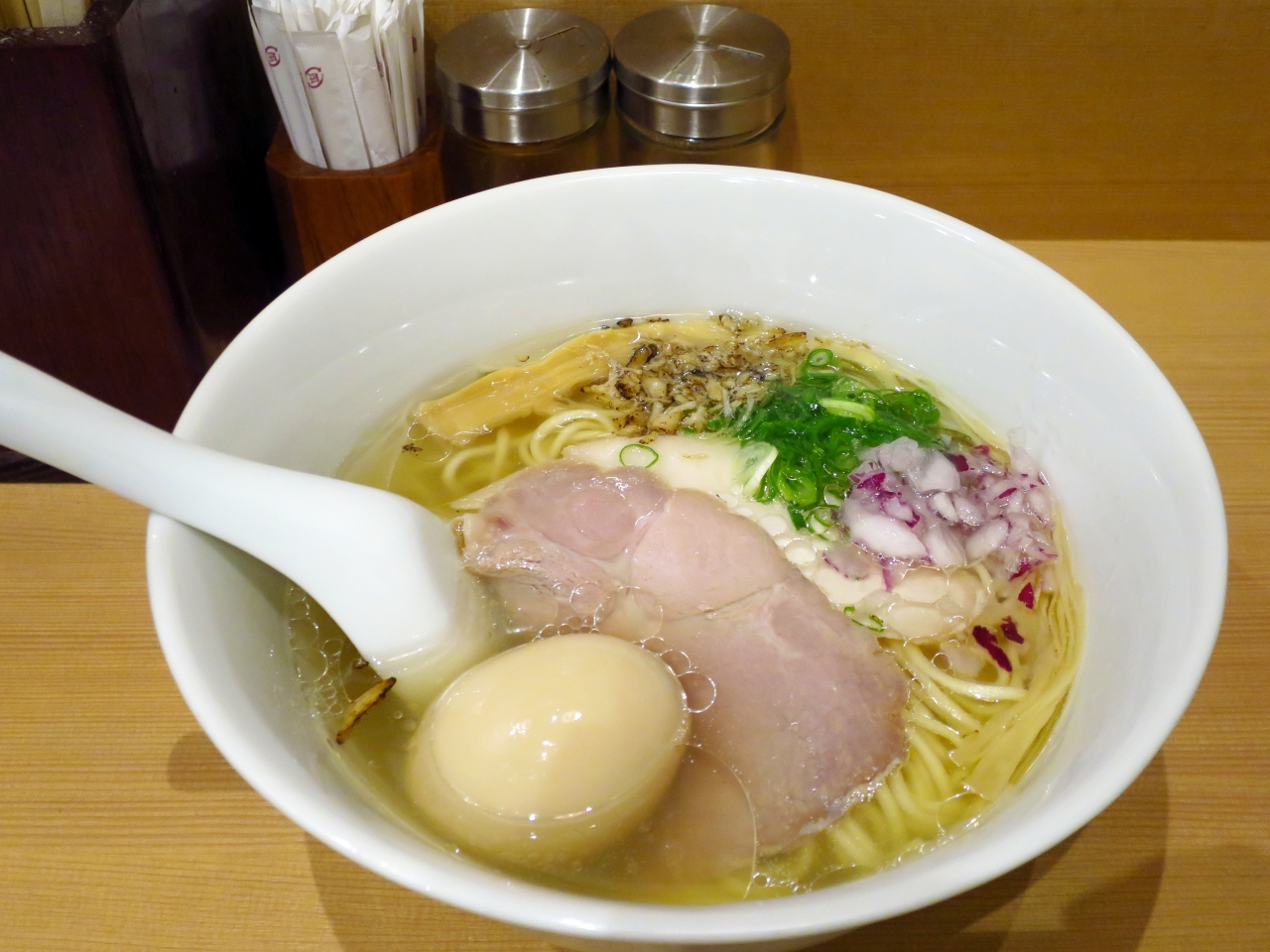 The soup is based on salt or soy-sauce, with chicken or sea bream. And it's characterized by its clean taste. The soup does not leave much of an aftertaste, making it popular among women. On the other hand, I found it difficult to scoop up the soup with a spoon, probably because of the shape of the bowl.