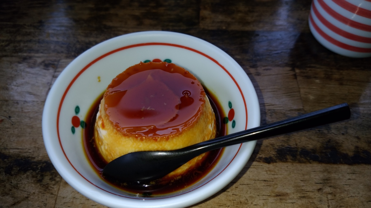 岡本屋旅館に宿泊して、夕食の最後にいただいたプリンの味が忘れられず、翌日もこちらでおやつに。ほろ苦のカラメル、とても美味しいプリンで、お土産にも購入しました。