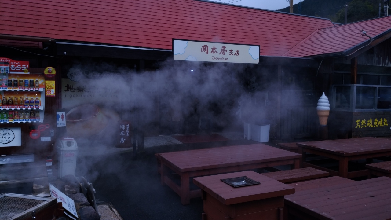 国道500号沿い、地獄湯前バス停からもすぐです。