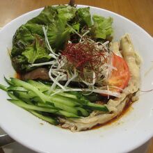 国道18号線沿いの軽井沢町役場向かいにあります。地元の人気店で昼時は駐車場がいっぱいになります。中軽井沢観光の昼食に利用しました。ラーメンやチャーハン各種、夜の一品料理など色々あります。今夜の宿の夕食に備えて麺を大盛にしないで注文しました。鶏そばと麻婆冷し中華を花山椒油にしました。麻婆冷し中華は麺が見えないくらい野菜やメンマ、干しシイタケの甘辛煮などがたっぷりのっていました。辛いもの好きの自分に調度いい辛さで美味しかったです。連れが頼んだ鶏そばはあっさりすっきりした塩味スープで細麺を美味しそうに食べていました。また食べに来たい店です。