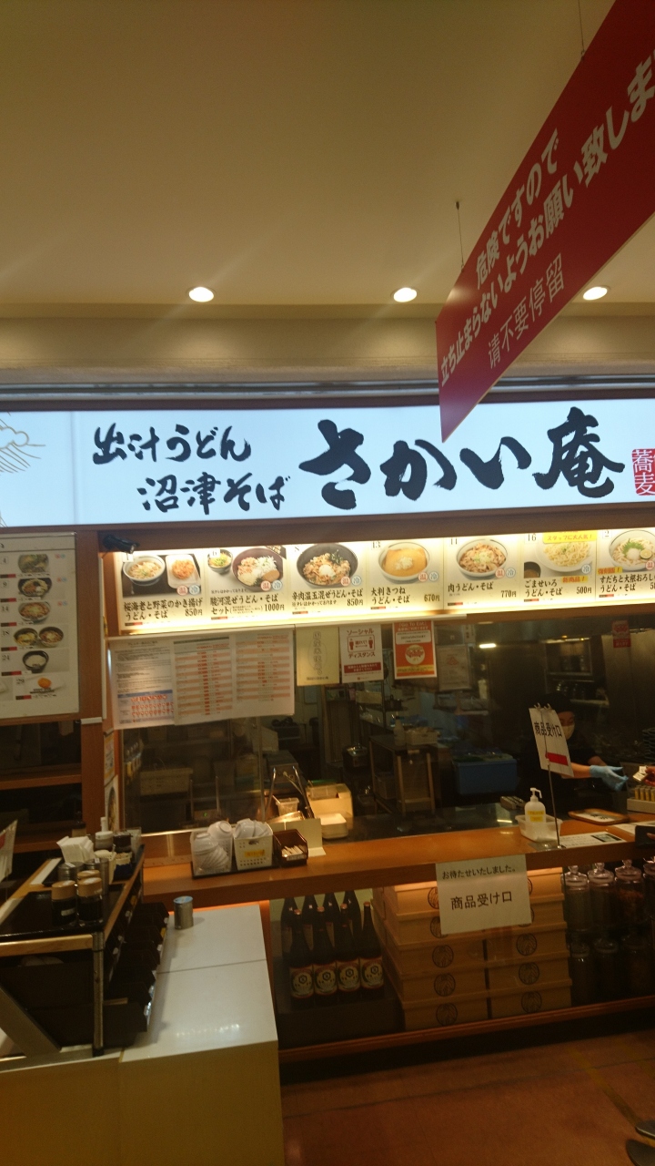 新東名高速道路の静岡県駿河湾沼津サービスエリア下り フードコート内にある麺類店。このサービスエリアの休憩スペースは広く席数が多い割に、フードコートにある店数が少ない。さらに店のジャンルがかぶり、洋食系やファーストフード類が全くない。