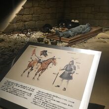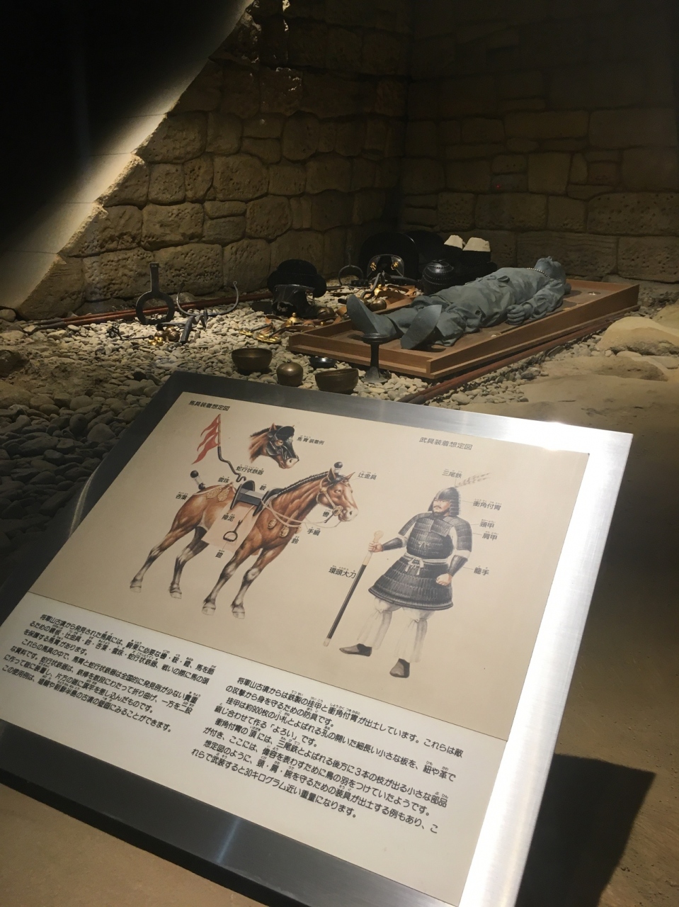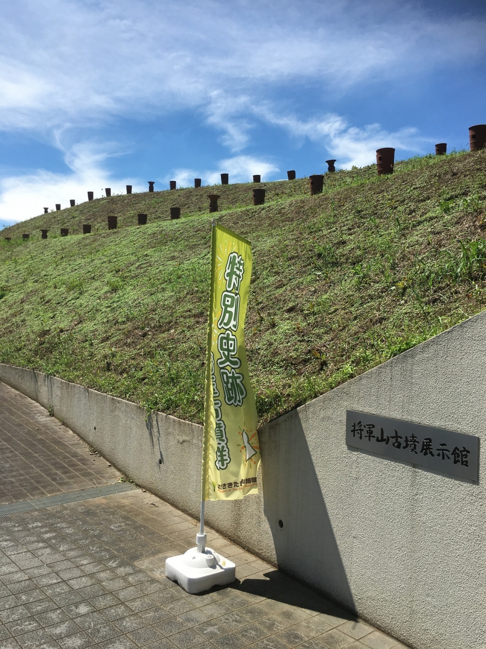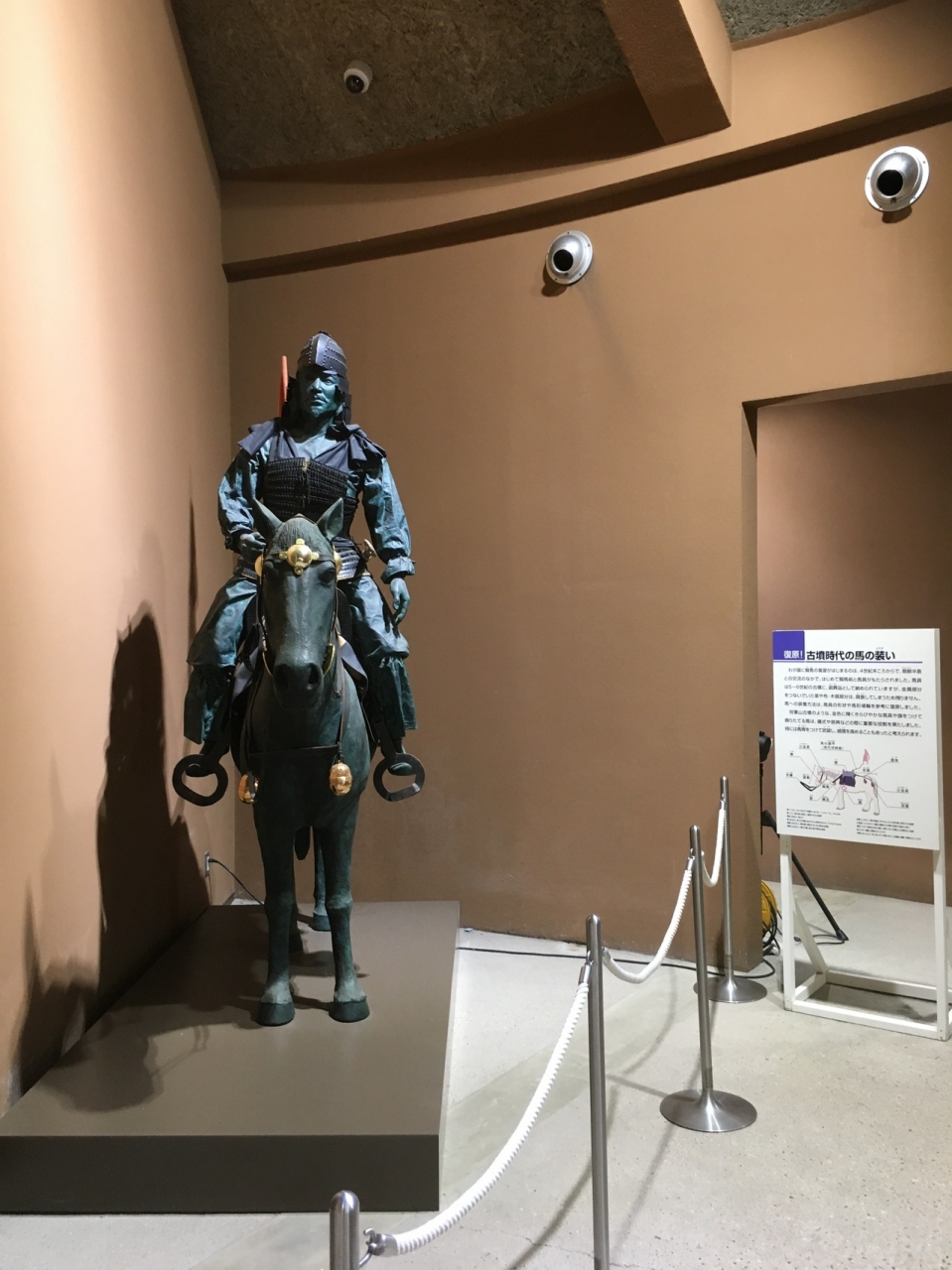 古墳には登ることが出来ないですが埴輪がたくさん並んだ前方後円墳で、古墳の中に展示館がありました。古墳の断面の展示や埋葬の風景等の展示があります。馬の装いの兵士の展示がかっこよかったです。こじんまりとした展示ながら内容は濃いものでした。