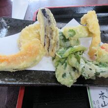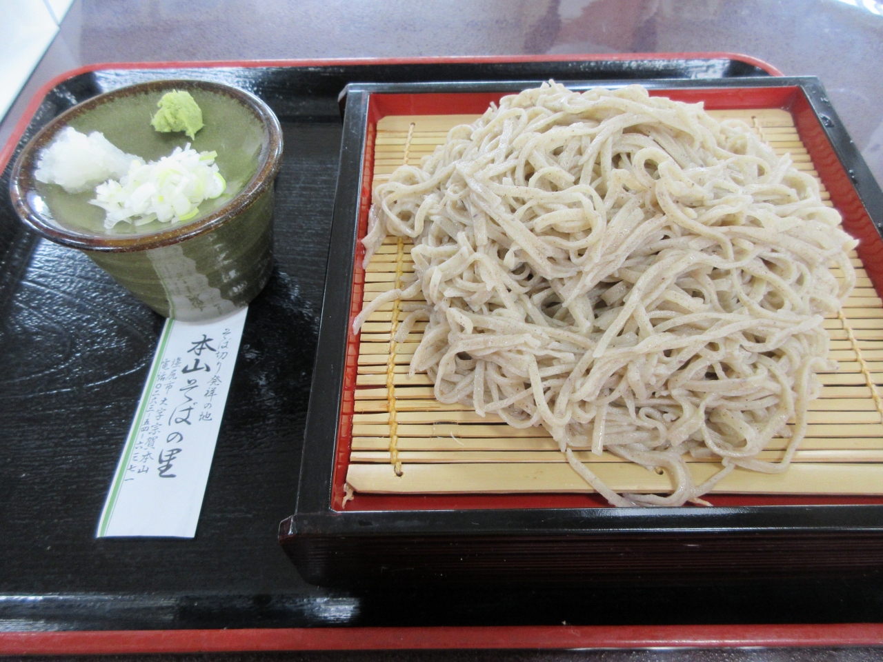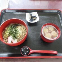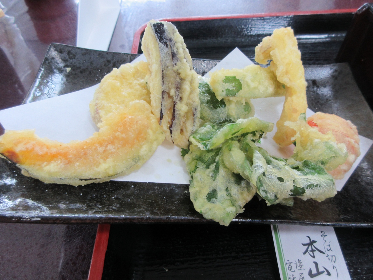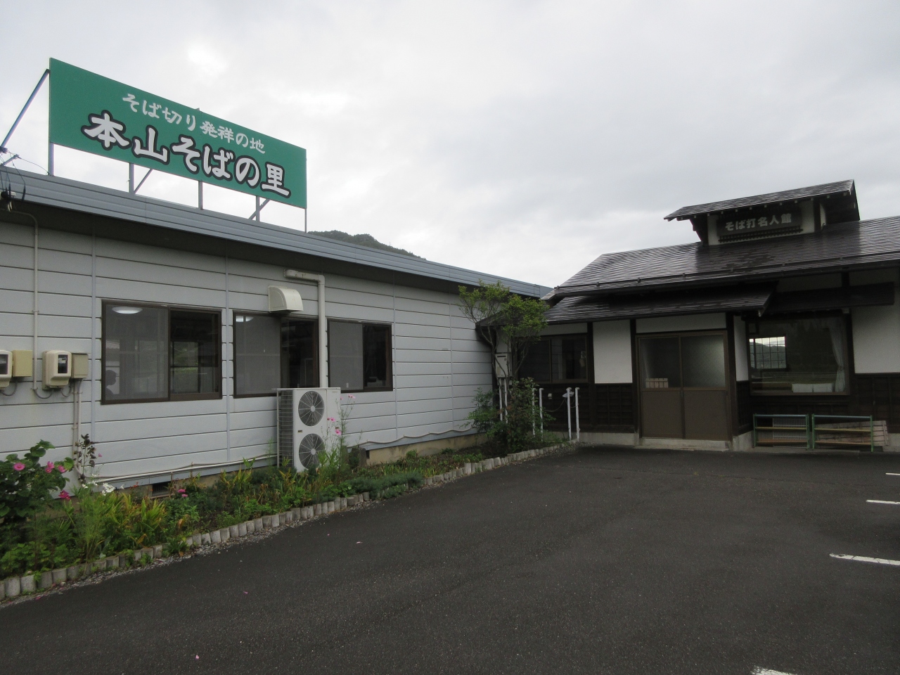 本山宿にある蕎麦屋です。 奈良井宿周辺を観光した帰りに昼食をとりました。白い花が咲いているそば畑の向かいにあるプレハブ小屋のような店です。地元の婦人たちが蕎麦打ちから調理まで行っています。せいろ蕎麦大盛と野菜の天ぷら盛り合わせ、そばぜんざいセットを注文しました。自分たちの蕎麦から新たに蕎麦を打ち始めるけれど時間は大丈夫でしょうかと聞かれました。のんびり旅なので待ちますと伝え、ぼんやりテレビを見ていたら、お待たせしてすみませんとそばの花が添えられた栗おやきをサービスで出してくれました。素朴でほんのり甘い初めて食べるタイプのおやきでした。蕎麦は短めでのど越しがよかったです。野菜天ぷらにトマトの天ぷらがありました。酸味が美味しかったです。そばぜんざいセットは少なめの温かい蕎麦と、蕎麦団子が入ったぜんざいでした。ほどよい甘さのぜんざいが疲れを取ってくれました。つきだしの甘酢漬けや山菜漬けが嬉しかったです。会計時に揚げそばを買いました。素朴な味の揚げそばです。婦人たちの温かさを感じる店でした。