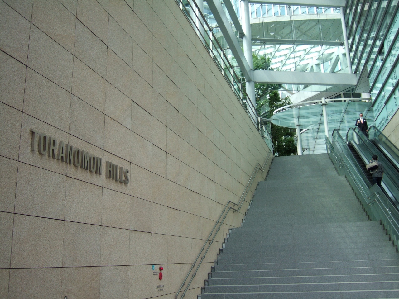 東京メトロ日比谷線に新しくできた、虎ノ門ヒルズ駅に直結している大きなビル。4つのビルが集まっており、お店も多くて、ちょっとした町の雰囲気です。