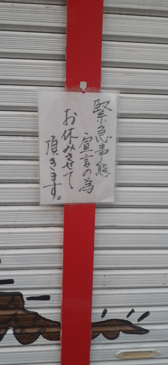 「神社」なので、普通に境内とかがあって、入れるかと思ったら、お店を使っているからか、コロナの緊急事態宣言を受けて、シャッターが下りていました。