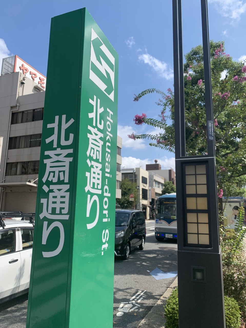 整備された道路で、街路灯や公園に北斎の作品がさり気なくあって、