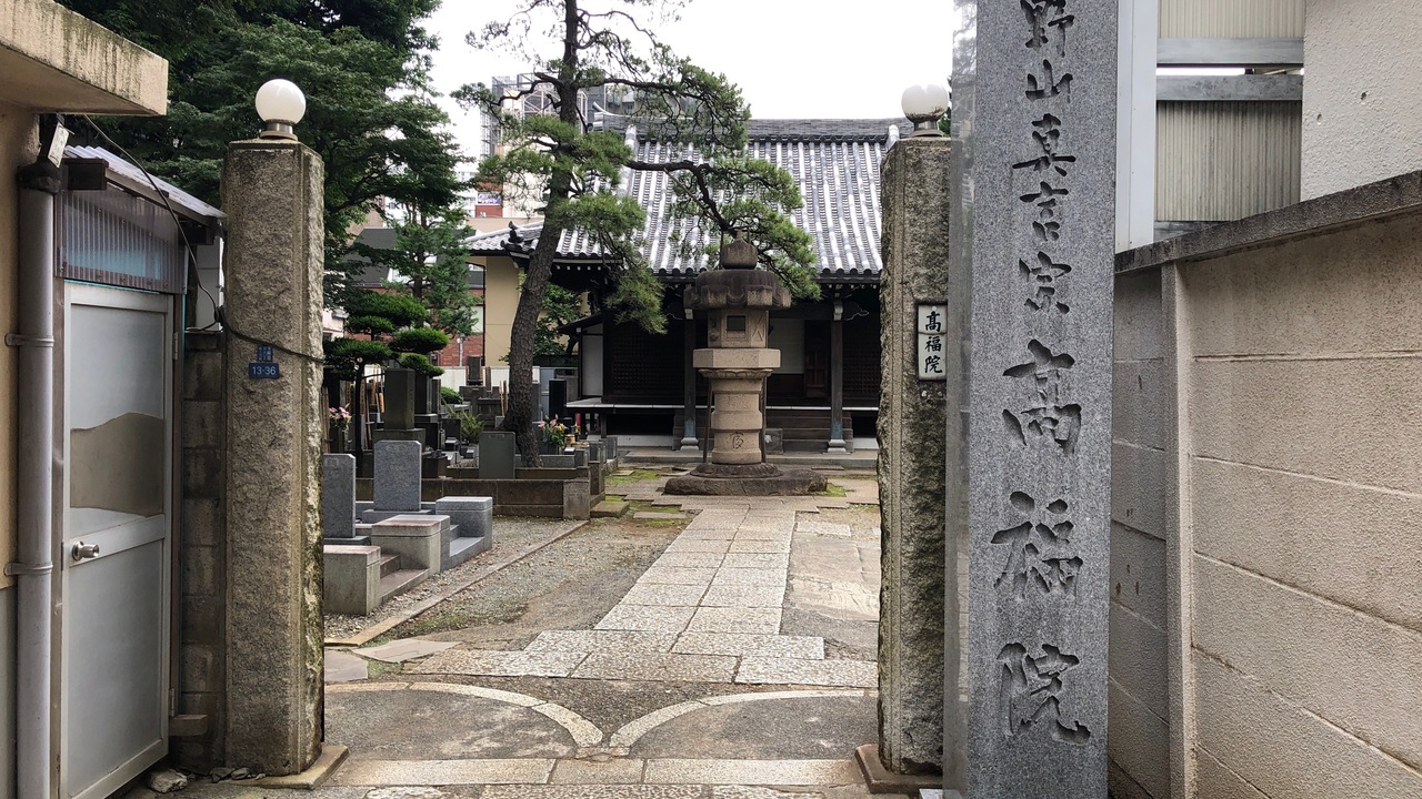 目黒駅から東京都庭園美術館・国立科学博物館自然教育園へ向かう途中、目黒通り沿いにあるお寺です。高野山・金剛峯寺の塔頭として始まったのが起源で、高野山真言宗のお寺です。本堂の前など境内には、墓地が広がっています。