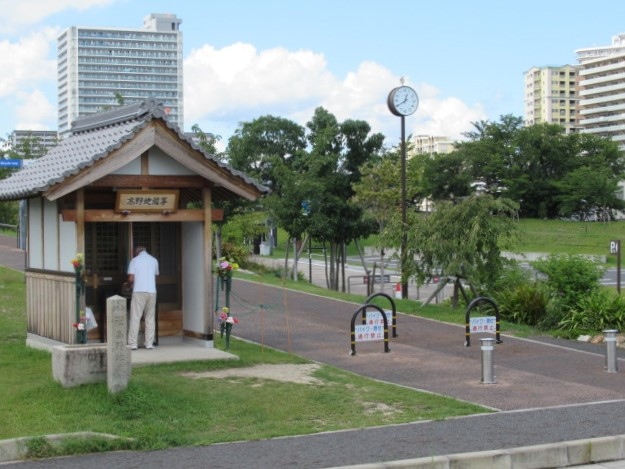 1816年に建てられたようですが旧草津川の北側にあったようです。ちょっと高台になっていて整備された「草津川跡地公園 de愛ひろば」や小さな社も眺めることができるところです。殿様や大名など著名人も通行されたのでしょう。水戸黄門になった気分です。