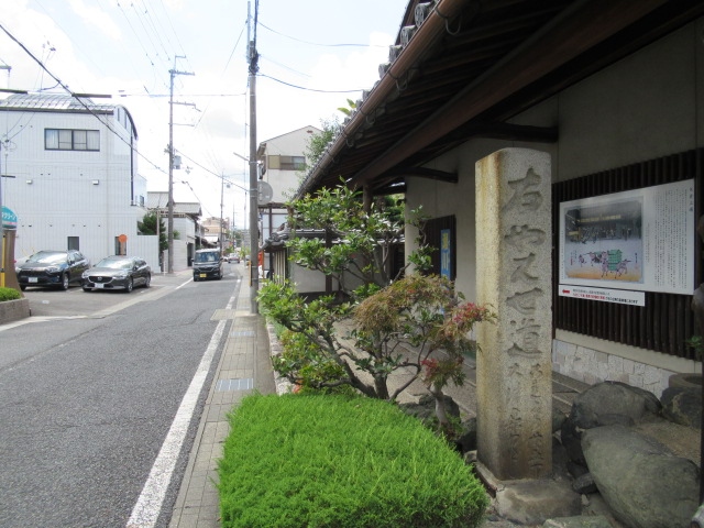 この「矢倉道標」もそのひとつで「追分道標」から約1㎞京よりに建っています。東海道と矢橋道の分岐点にあたる場所で、矢橋道とは琵琶湖畔にある「矢橋の渡し」までの約2.7㎞の道です。