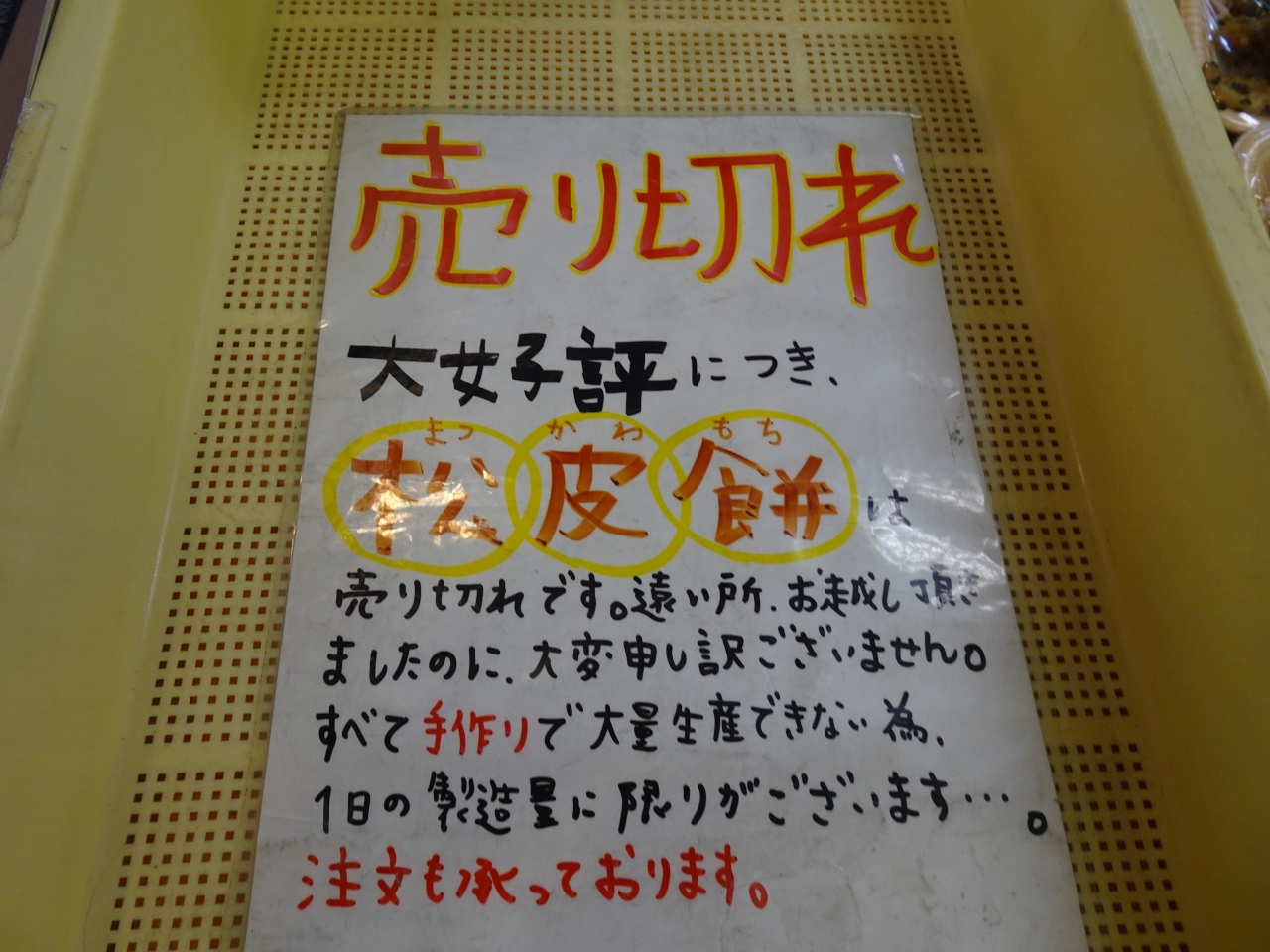 訪れたのは土曜日の午後。周辺は交通量が少なく道の駅は空いていましたが、名物の「松皮餅」(アカマツの薄皮を練り込んだ餅)は既に売り切れ。手作りのため1日あたりに製造できる量は限りがあるとのことです。ゲットするには早めの時間帯に訪れた方が良いでしょう。