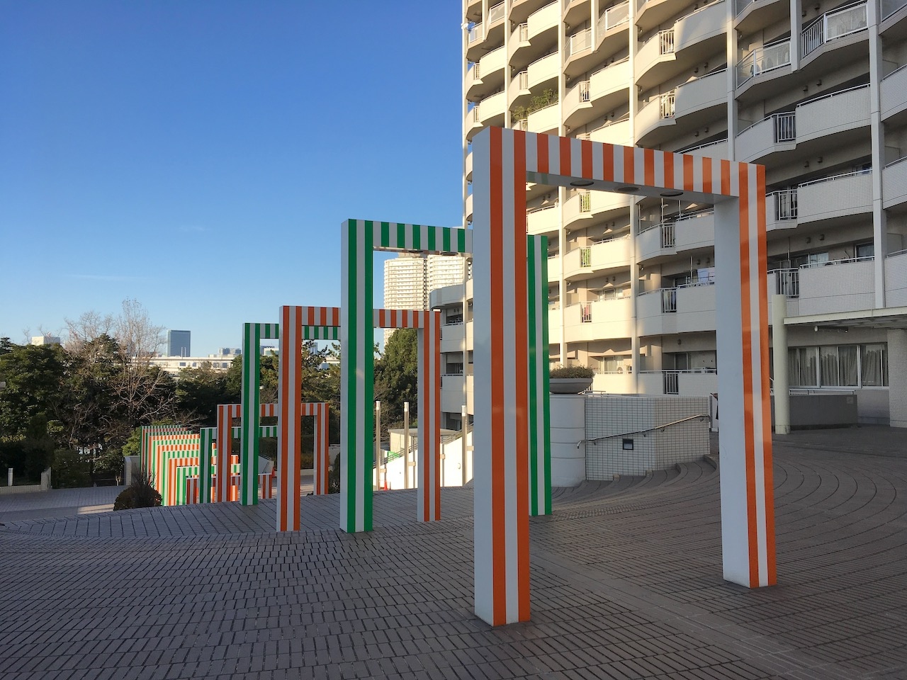 公園までのアプローチには、連続したゲートのようなパブリックアートがありました。
