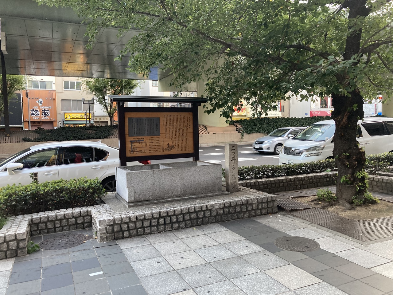 国立文楽劇場の手前にある碑で、井戸があるわけではないです。