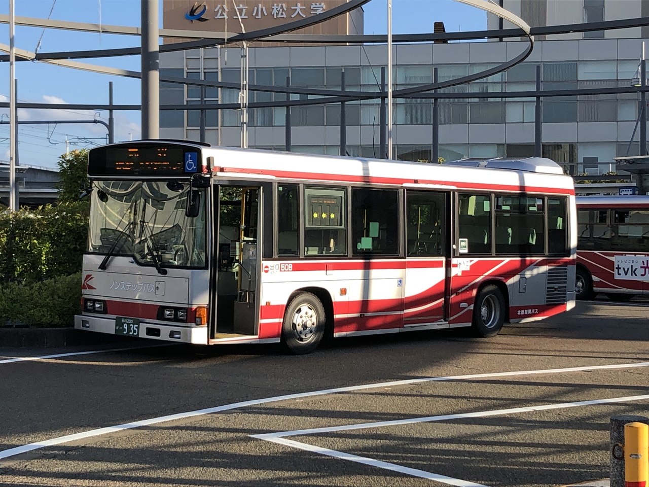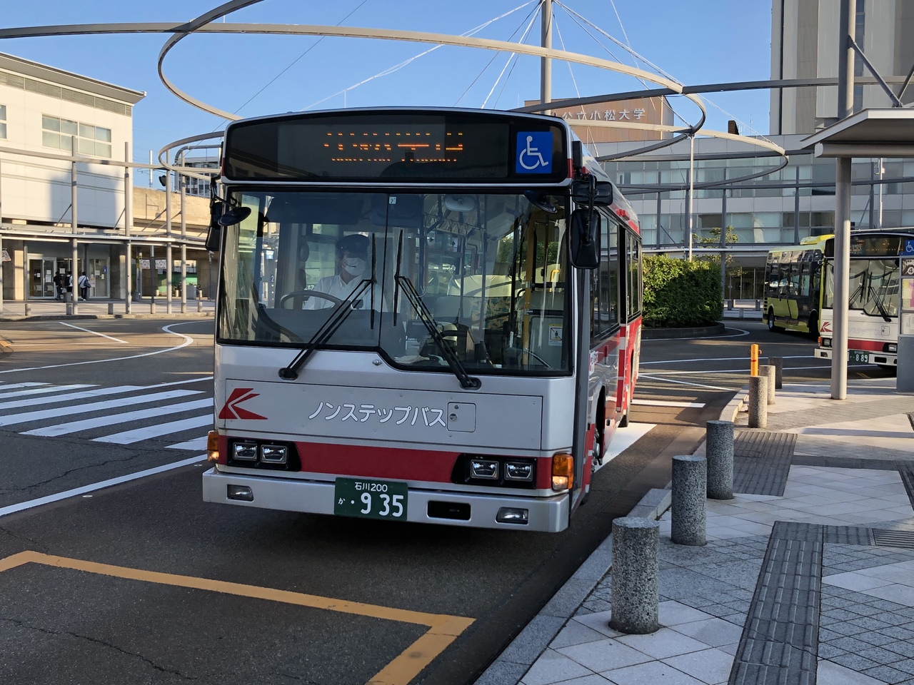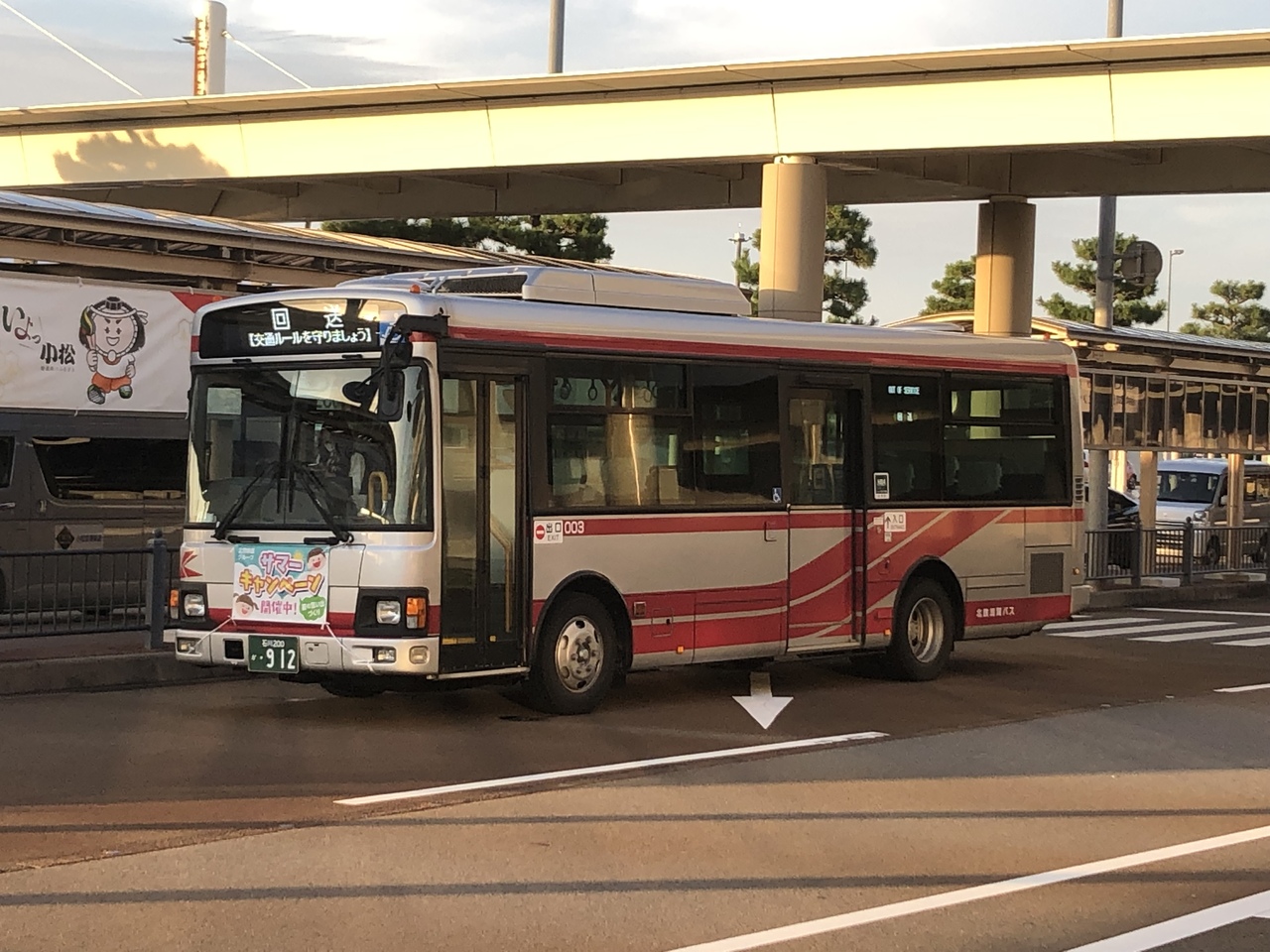合併後は、小松市内と加賀市内のバスを中心に運行。利用価値が高いのがJR小松駅から小松空港までの路線バス。朝6時55分から夜19時まで、EVバスも含めて概ね1時間に2~3本運行。小松駅駅から空港まで11~12分で結んでおり、金沢駅から空港までJRとうまく乗り継ぜれば50分くらい。北鉄バスの空港リムジンバスよりも安く行けるメリットはある。福井駅から小松空港までの京福バスがコロナ影響による運休のため、JRとのセットで利用しましたが、小松駅でも待ち時間もあまりなかったので、スムーズでした。