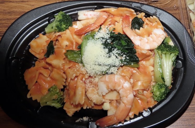 品川のエキュートに立ち寄ると、まずここへ行きますね。なぜか。うーん理由はヘルシーなイメージがあるから? 店名のVはベジタブルでしょ? この日はいつものタコライスを目指したらありませんでした。その代わりトマトクリームのパスタ購入。これがショートパスタのファルファッレだったのが決め手。冷めてもおいしいお弁当、って感じでレンチンしませんでした。エビもしっかり入っていて680円。税込で。少食者ならこれで一食完結ですからね。