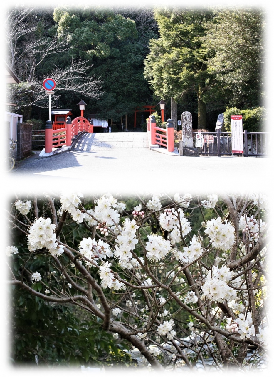 神橋の袂にある下馬標石の右に白い花が咲き誇っていました。