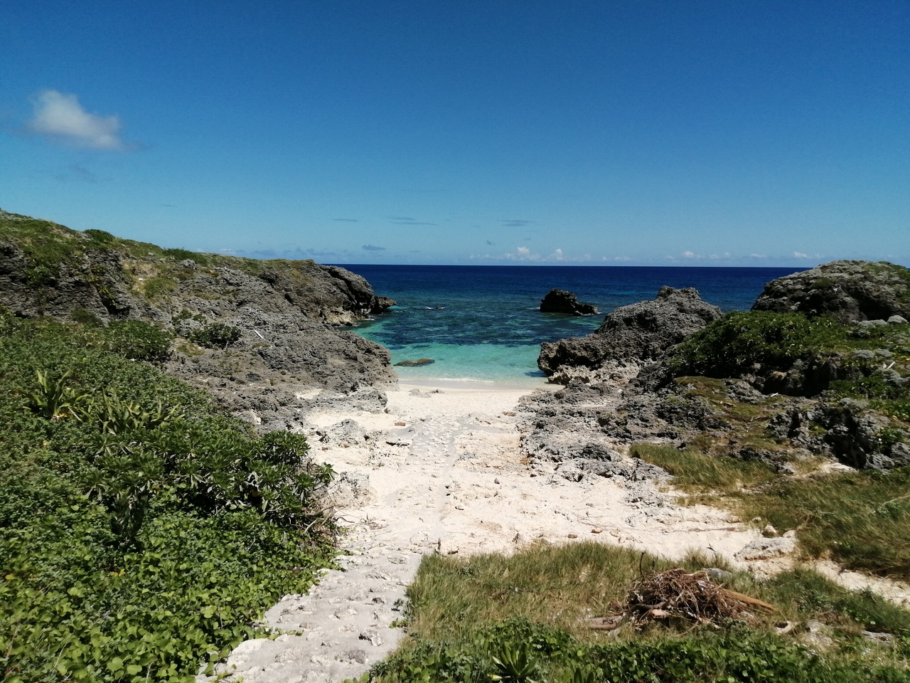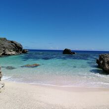 満潮時のサイズが四畳半とのことですが、たぶんもっと大きいです(と言ってもちっちゃいですが…)。しかし透明度は抜群でとても美しいビーチです。プライベート感たっぷり。岩場もあり、シュノーケリングも楽しめますが波が結構あるので注意が必要です。
