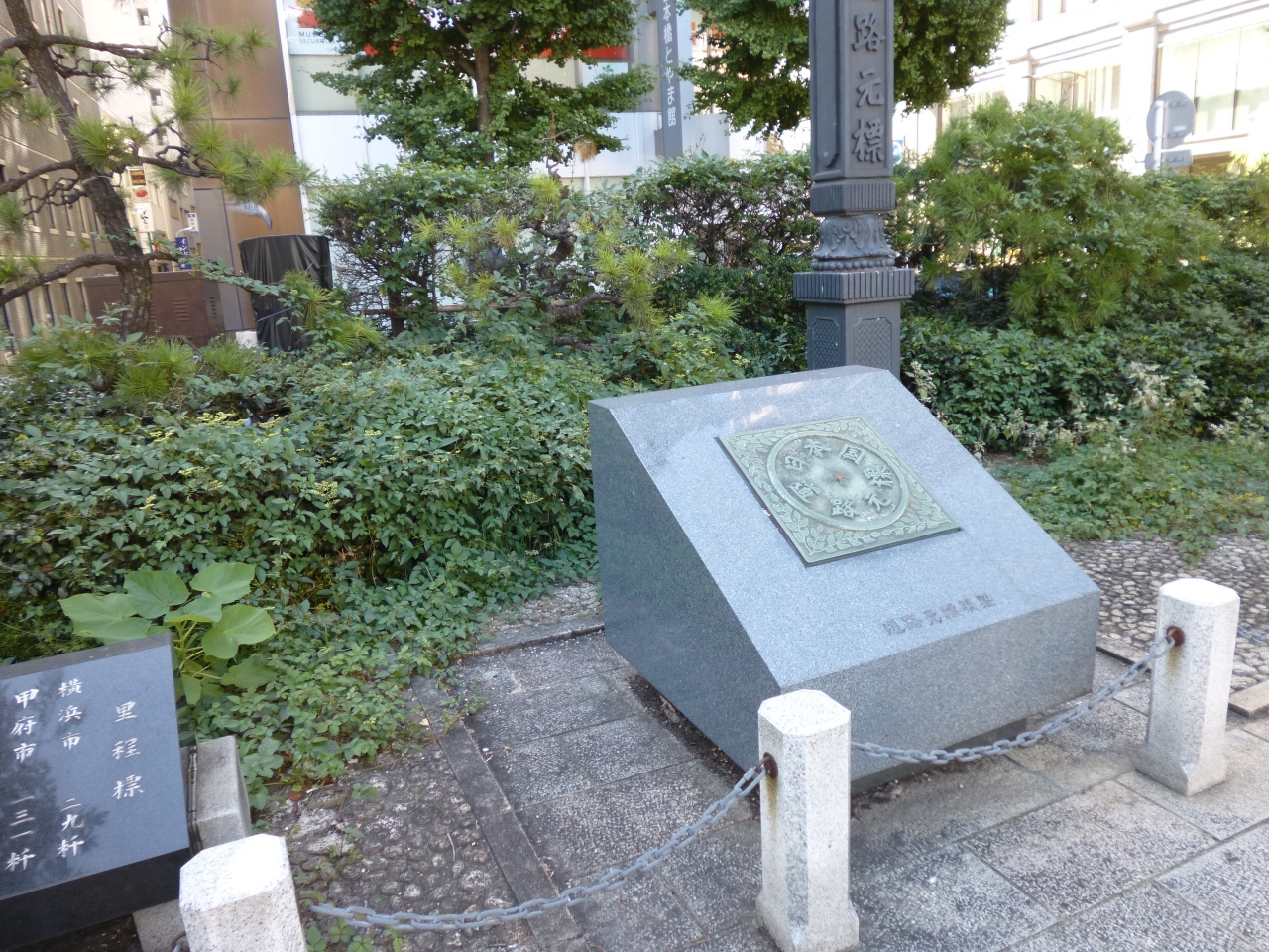 江戸時代に徳川幕府が定めた五街道(東海道、中山道、日光街道、奥州街道、甲州街道)の起点を明治政府が踏襲したことにより、日本橋の橋の中央が全国の国道の起点となっています。その道路元標のレプリカが橋の北西詰に設置されています。普段はあまり人だかりのない場所ですが、すぐ近くに五輪モニュメントが設置されており、多くの人の姿がありました。