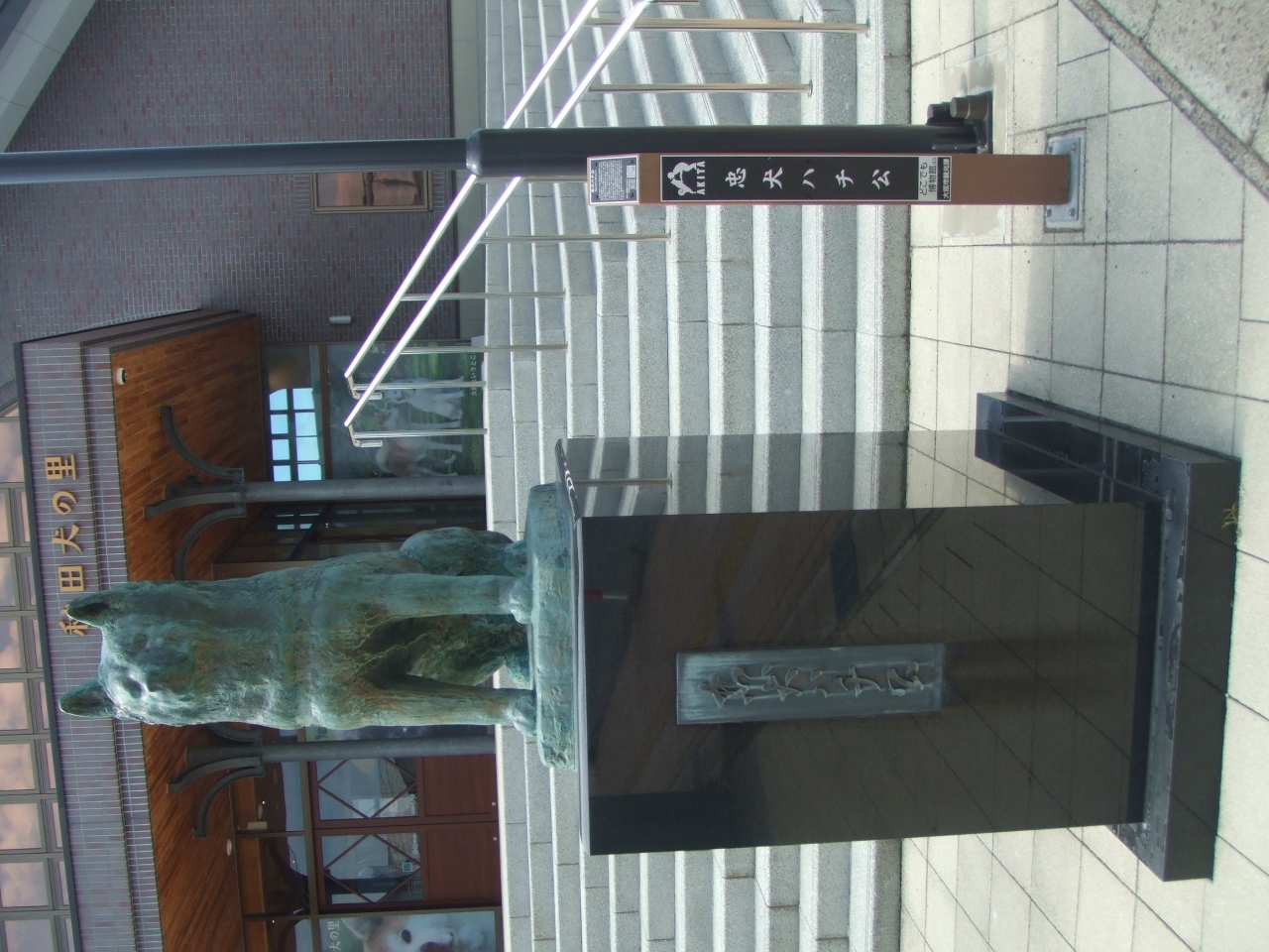 大館駅前に鎮座しているハチ公像。東京・渋谷の物より大きいです。後方に秋田犬の里があるのですが、昭和初期の渋谷駅を模して造られました。ハチ公と名の付く通り、小径、ドーム等があり、改めてハチ公が大館市民に慕われていると思いました。