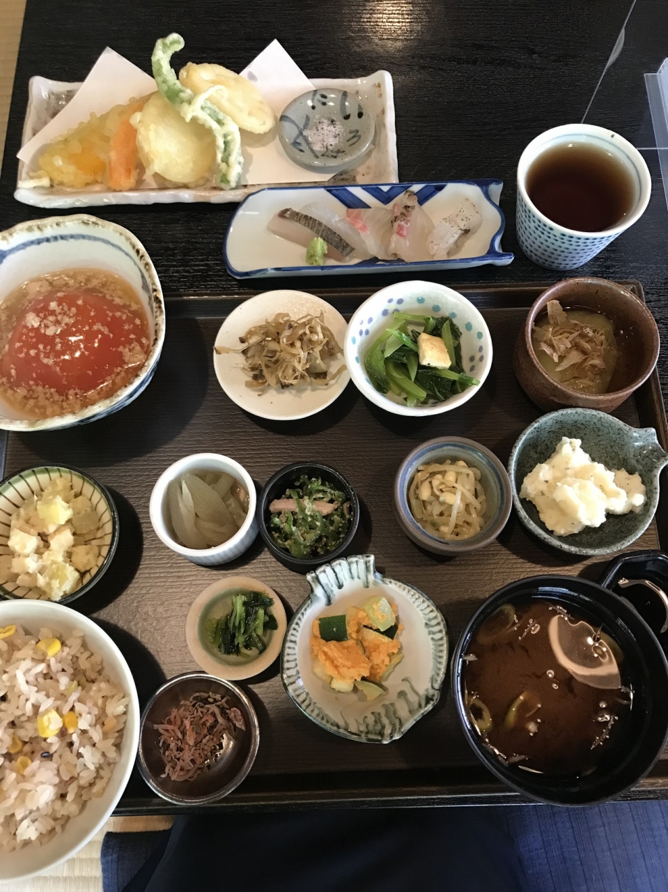 昭和の香り佇む建物で頂いたお料理は、なんと種類の多いこと!少しずつ沢山の種類のお惣菜に、メインはどれ?天ぷら、肉料理、デザートまで!お腹いっぱい、いろいろ食べれる幸せと、もちろん味も良し!また行きます!!