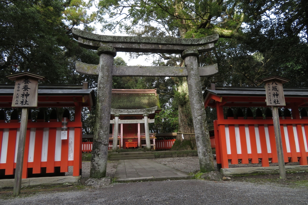 八坂神社は、スサノオノミコトを祀った神社で、弥勒寺跡に建てられています。その八坂神社と合祀されているのが、養蚕神社です。