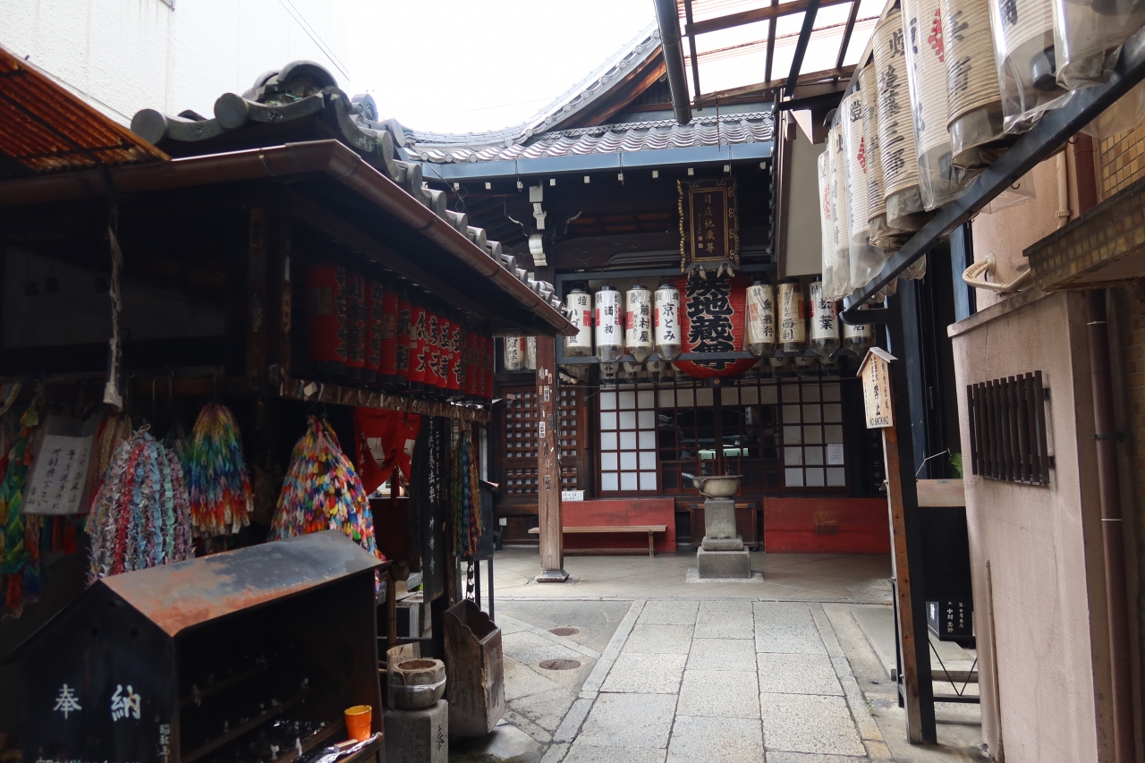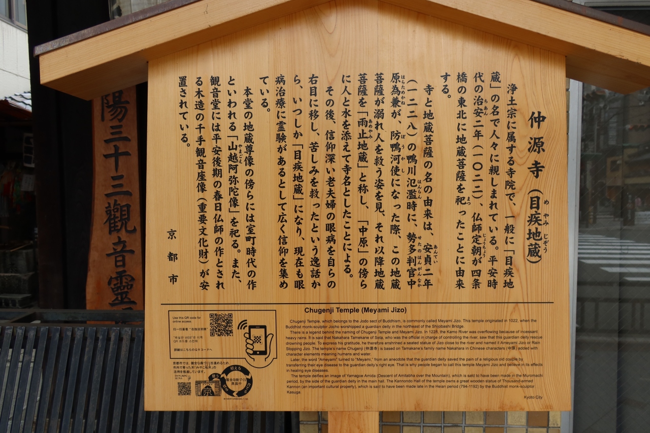 四条通りと大和大路通りの交差点近くに仲源寺があります。小さなお寺で、四条通り商店街の中にあり、気にしないと通り過ぎてしまうようなお寺です。目疾地蔵と呼ばれる地蔵尊が祀られており眼の病気にご利益があると言われています。ここにお参りすると目が良くなるかもしれませんね。