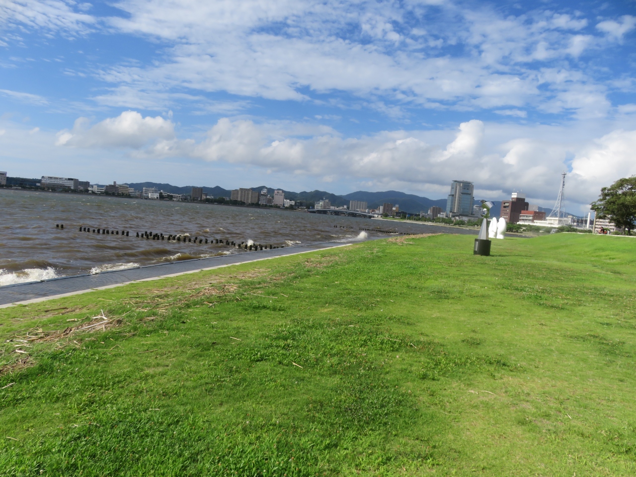 美術館の前や夕日スポットテラスなど主要なところはきちんと整備されています。湖畔を散歩できるようにもなっていましたが、行ったときは風が強く波が高くて歩道にも水がありましたが穏やかな日はランニングとか気持ちが良いだろうなというように見えました。