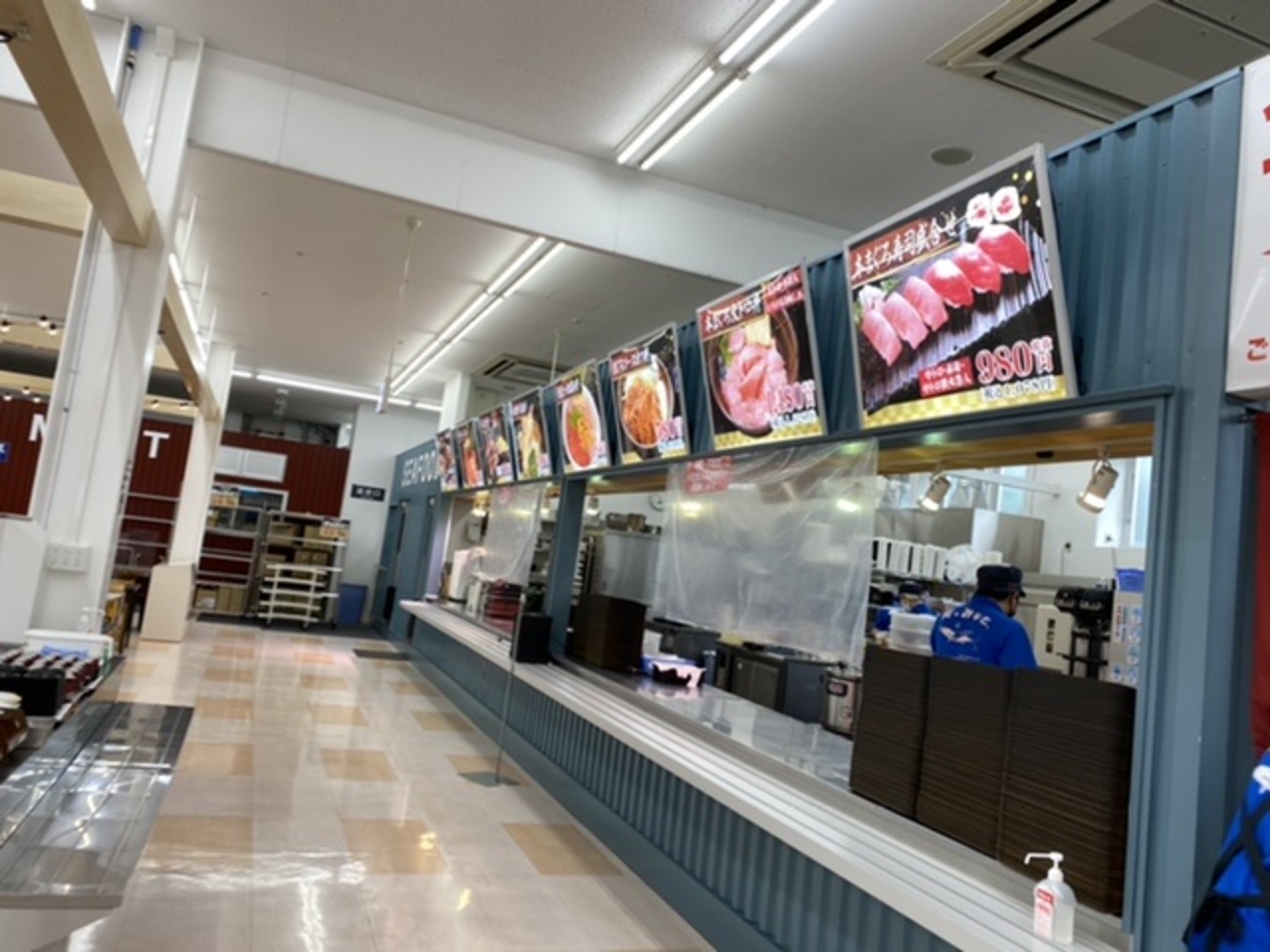 フードコートの本マグロが本当に美味しかったです。しかもメニューは1000円以下から高くても1000円台、市内でこんなに安く、こんなに美味しいマグロを食べられる場所はないと思います。野菜やフルーツも安くいいものが売っていて、地元の方が羨ましいと思いました。