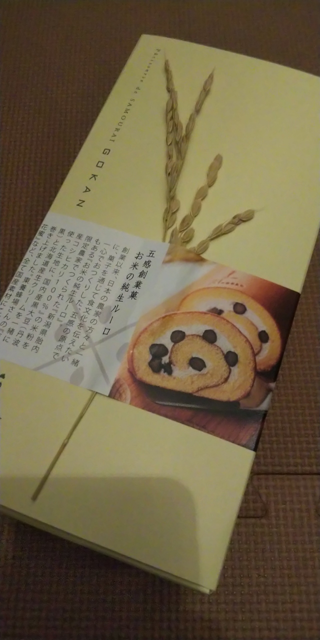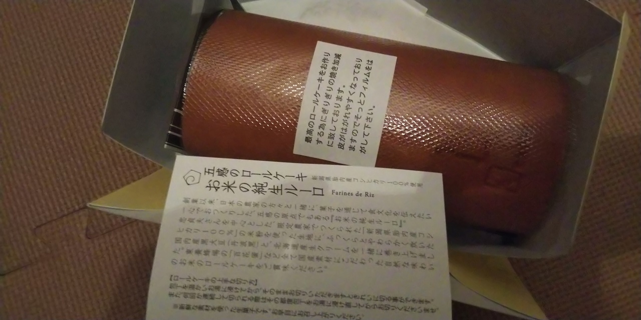 五感の有名なお菓子、純米ルーロは丹波の黒豆の入ったロールケーキです。和の食材にこだわったロールケーキで、新潟県胎内産のコシヒカリで作った米粉や北海道産の生クリームなどがふんだんに使われています。相変わらずおいしかったです。