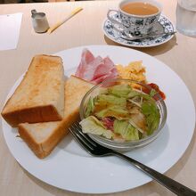 京都駅中央口からエスカレーターで地下に降りたらすぐあります。卵サンドが食べたかったのですが、土曜の為かプレートモーニングとサービスモーニングしかありませんでした。せっかく来たのでプレートモーニングを頂きました。トースト、サラダとスクランブルエッグとラタトゥイユとハムでボリューム満点です。コーヒープラス150円で、駅中で食べられるならお得ですね。