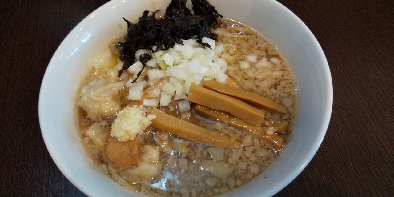 ユニークなネーミングのラーメン屋さんです。船橋市の住宅地にあり最寄駅は東葉高速鉄道の東海神駅。小さなお店でまだ新しく、赤い暖簾が目印です。醤油が効いたスープに硬めの太麺がよく絡むラーメンですがやや塩気が多め。ニンニクが一つのアクセントですが気になるなら外してもらえます。厳禁のみのチケット制のお店でした