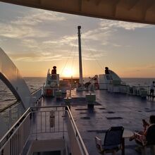 普通ならトホホ…な状況と言えますが、それはまったくの逆。入出しになり夜に航行するのは年に数回もないとのこと。とても貴重な体験なのです。船上から見た夕日、星空、石垣市街の夜景…忘れられない思い出となりました。