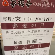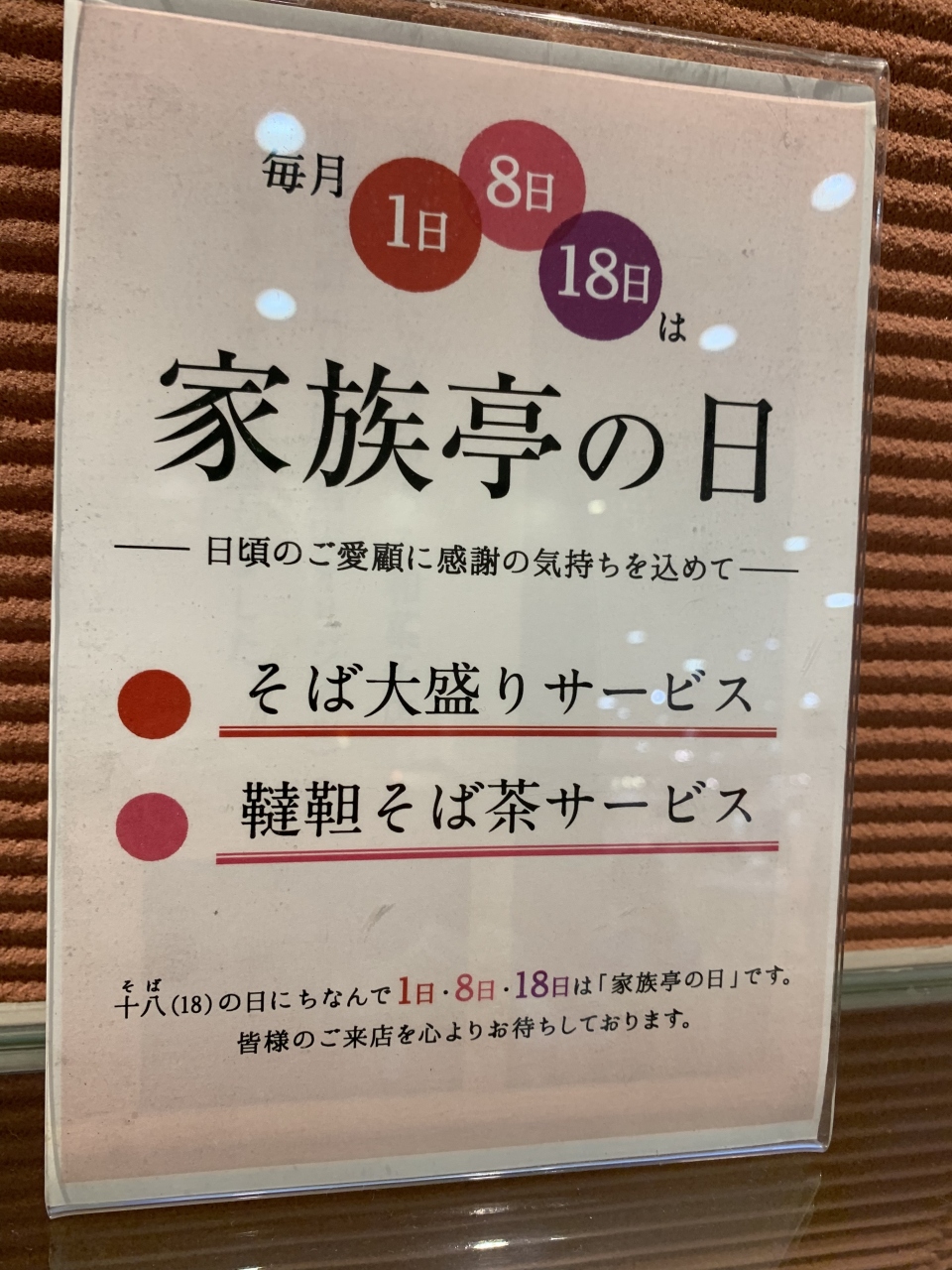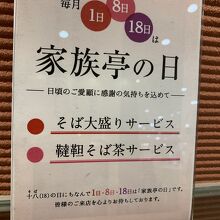 毎月1日・8日・18日は「家族亭の日」だそうです。