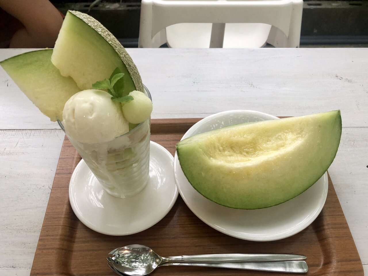 袋井は全国的にもマスクメロンの産地として有名です。そのメロン農園がやっている「フルーツカフェニジ」に、孫姫を連れて、メロンを食べに行ってきました。食べごろのメロンを安価で食べることができました。食べ頃日が書いてある、メロンも一玉買って帰りました。